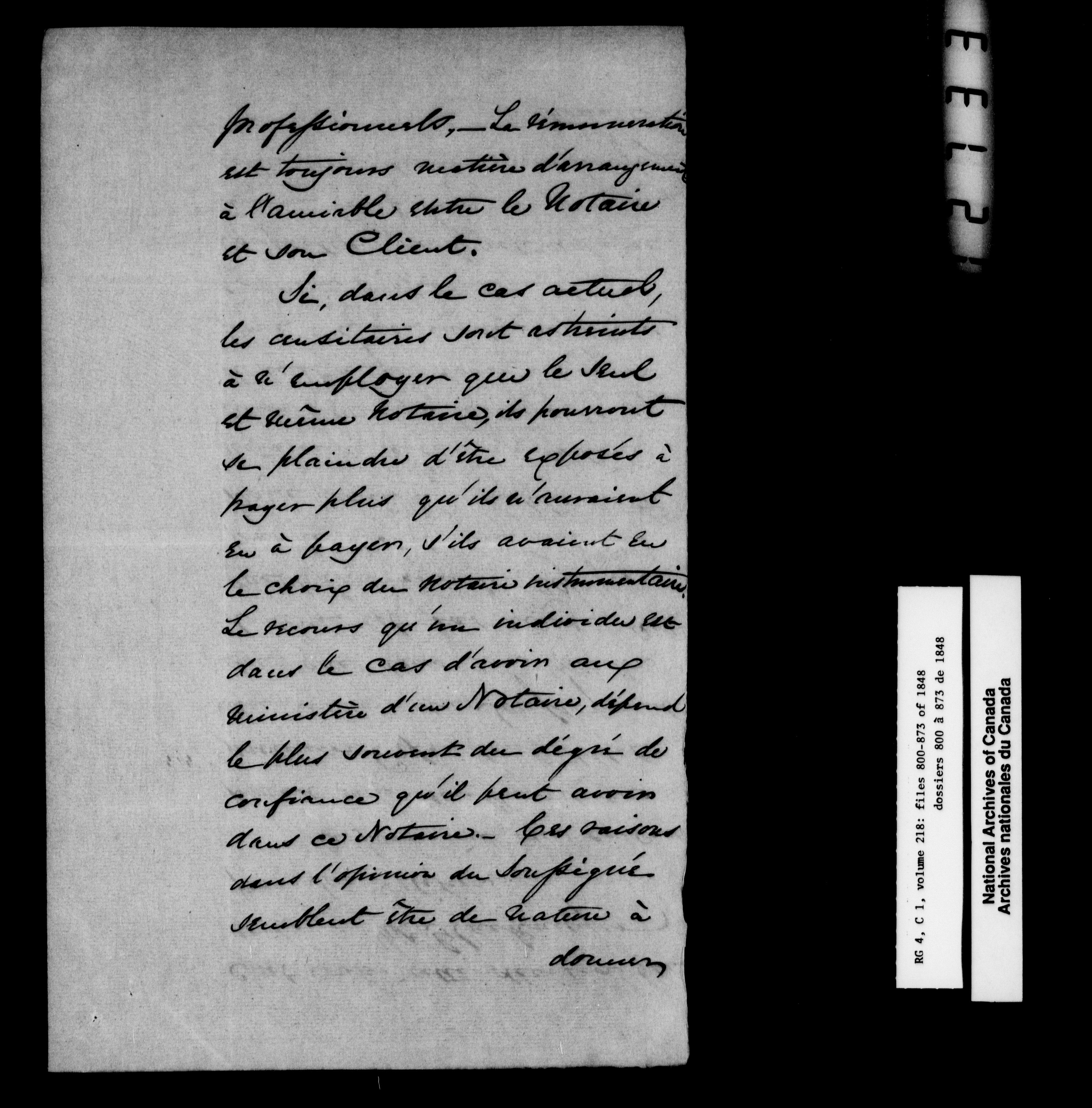 Canada East : Provincial Secretary numbered correspondence files, 1839-1867 - 2594
