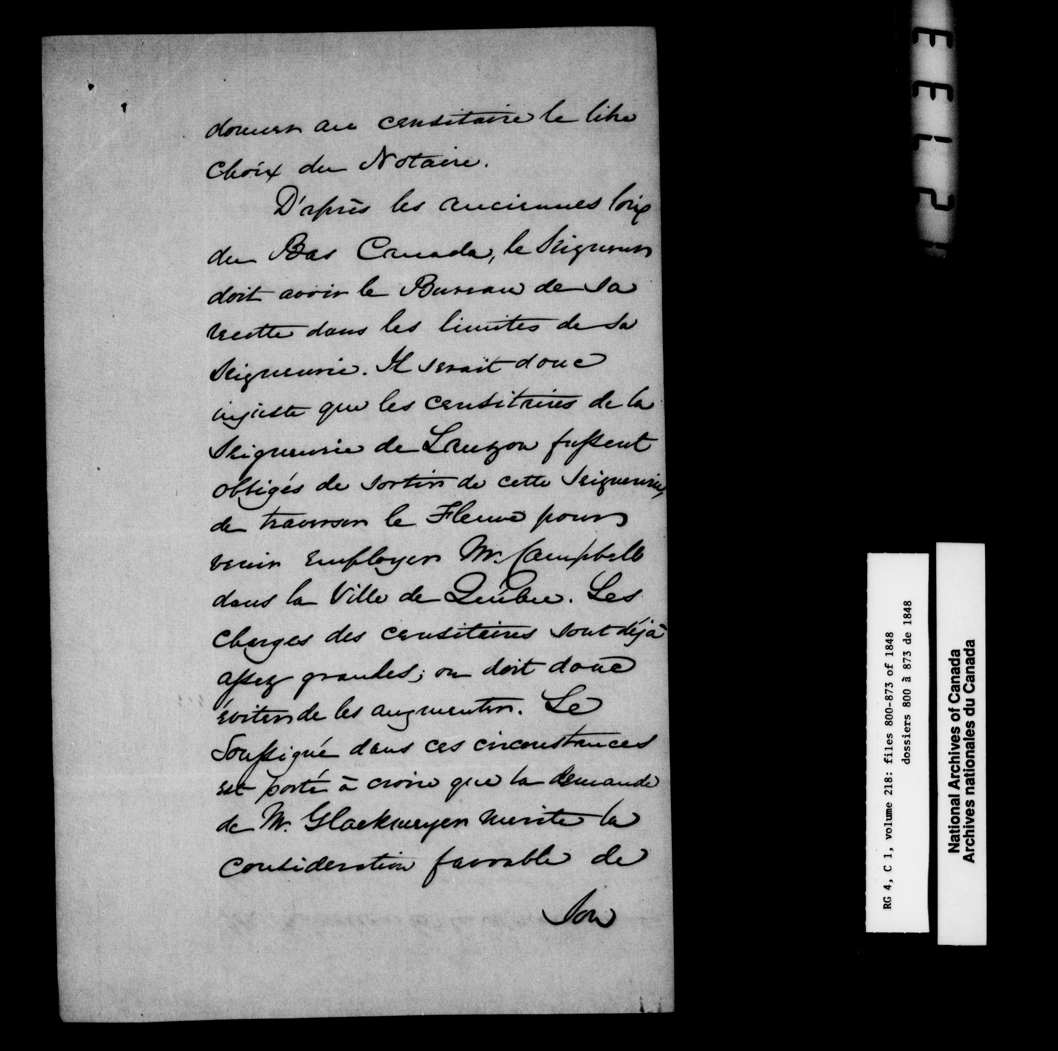 Canada East : Provincial Secretary numbered correspondence files, 1839-1867 - 2594