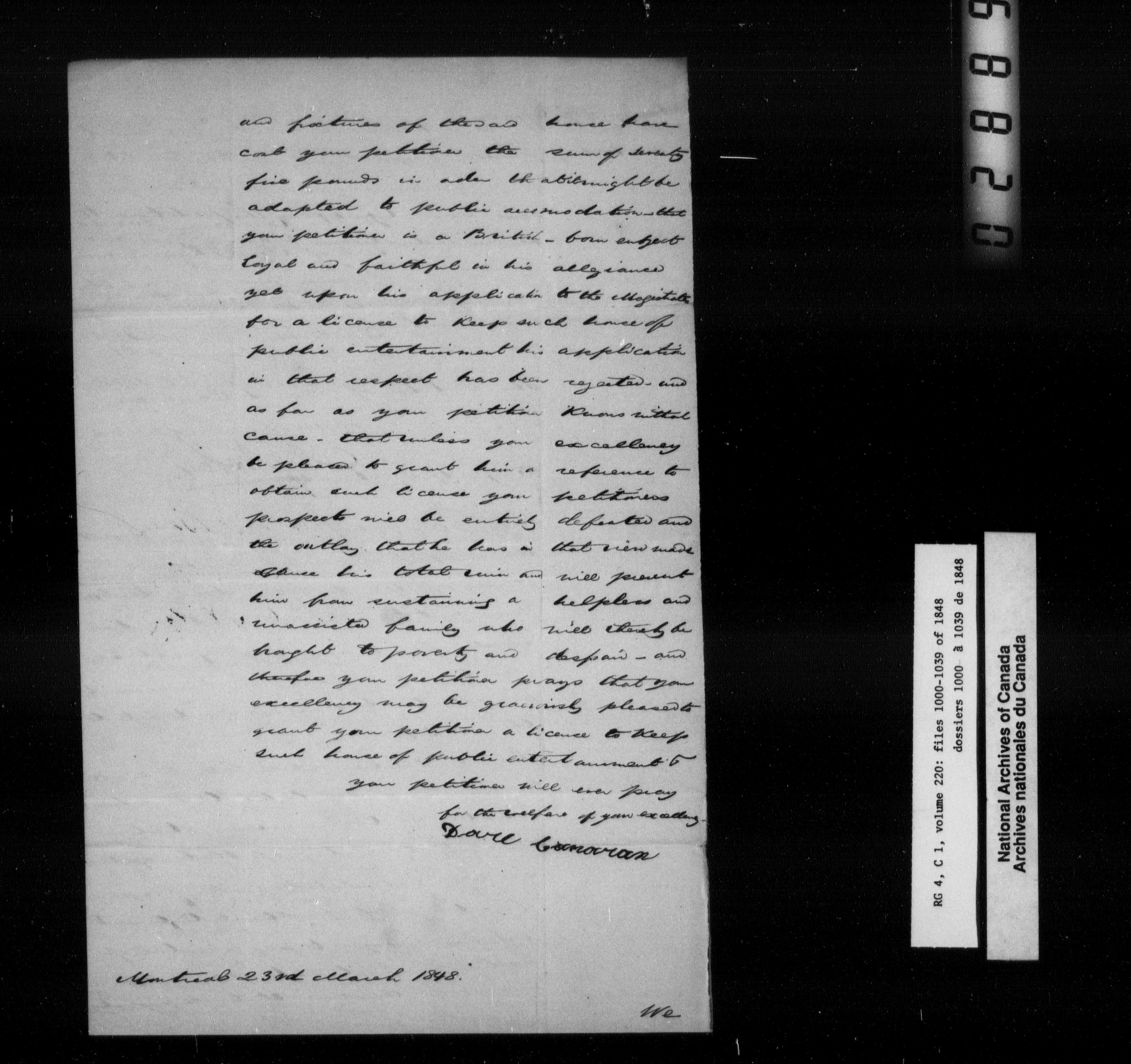 Canada East : Provincial Secretary numbered correspondence files, 1839-1867 : H-2595