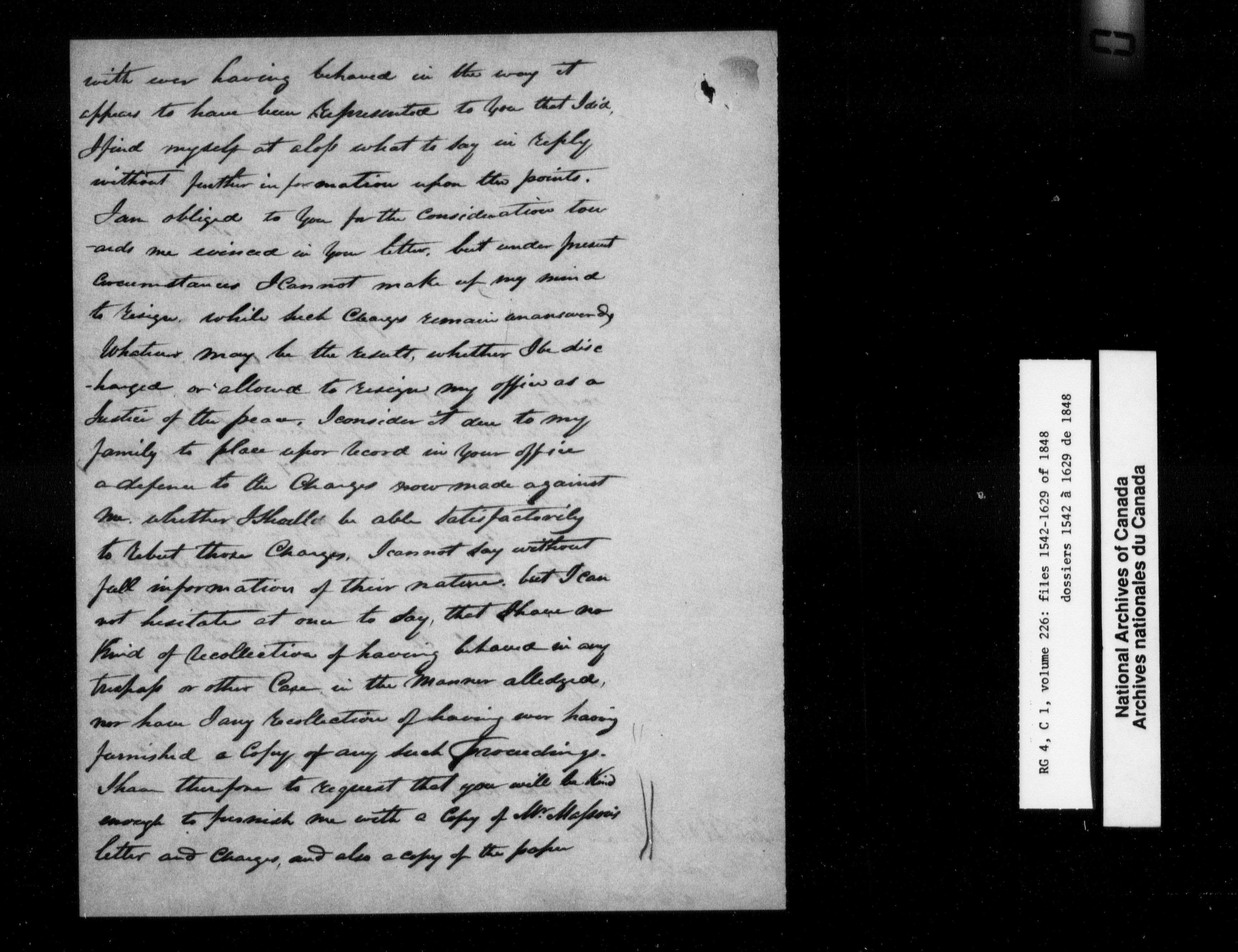 Canada East : Provincial Secretary numbered correspondence files, 1839-1867 - 2597