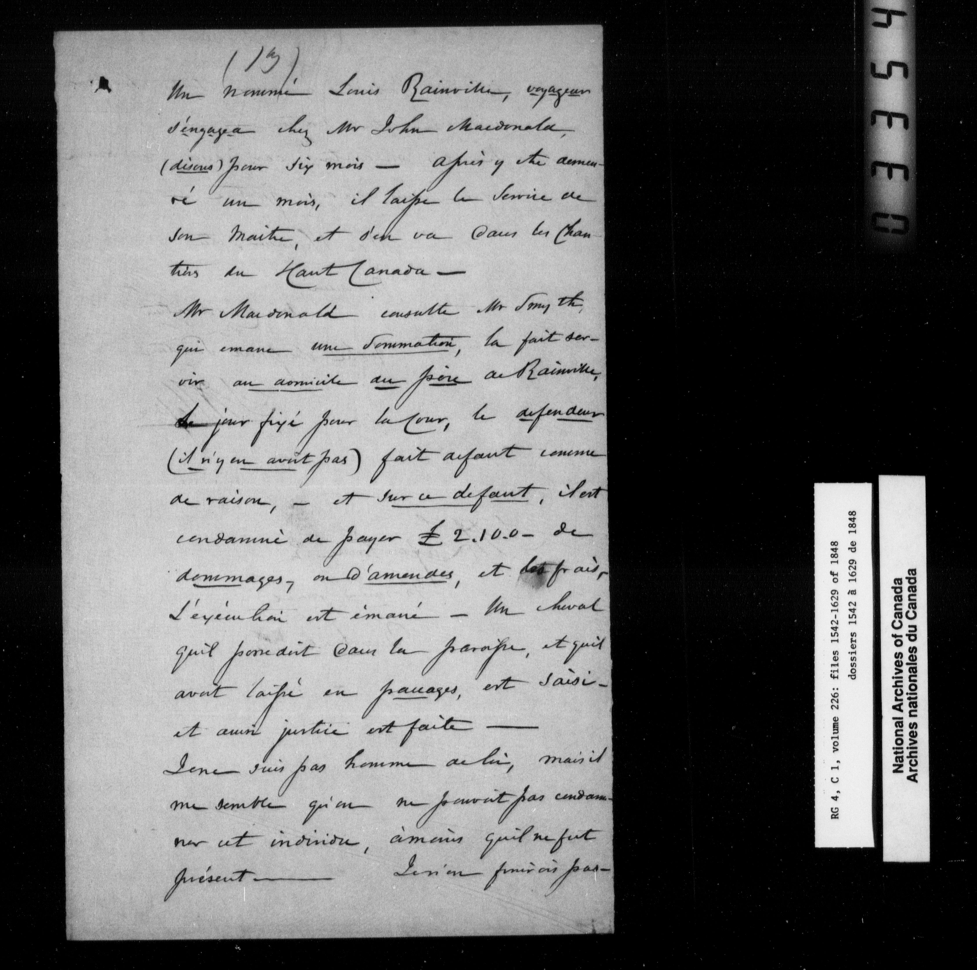 Canada East : Provincial Secretary numbered correspondence files, 1839-1867 - 2597