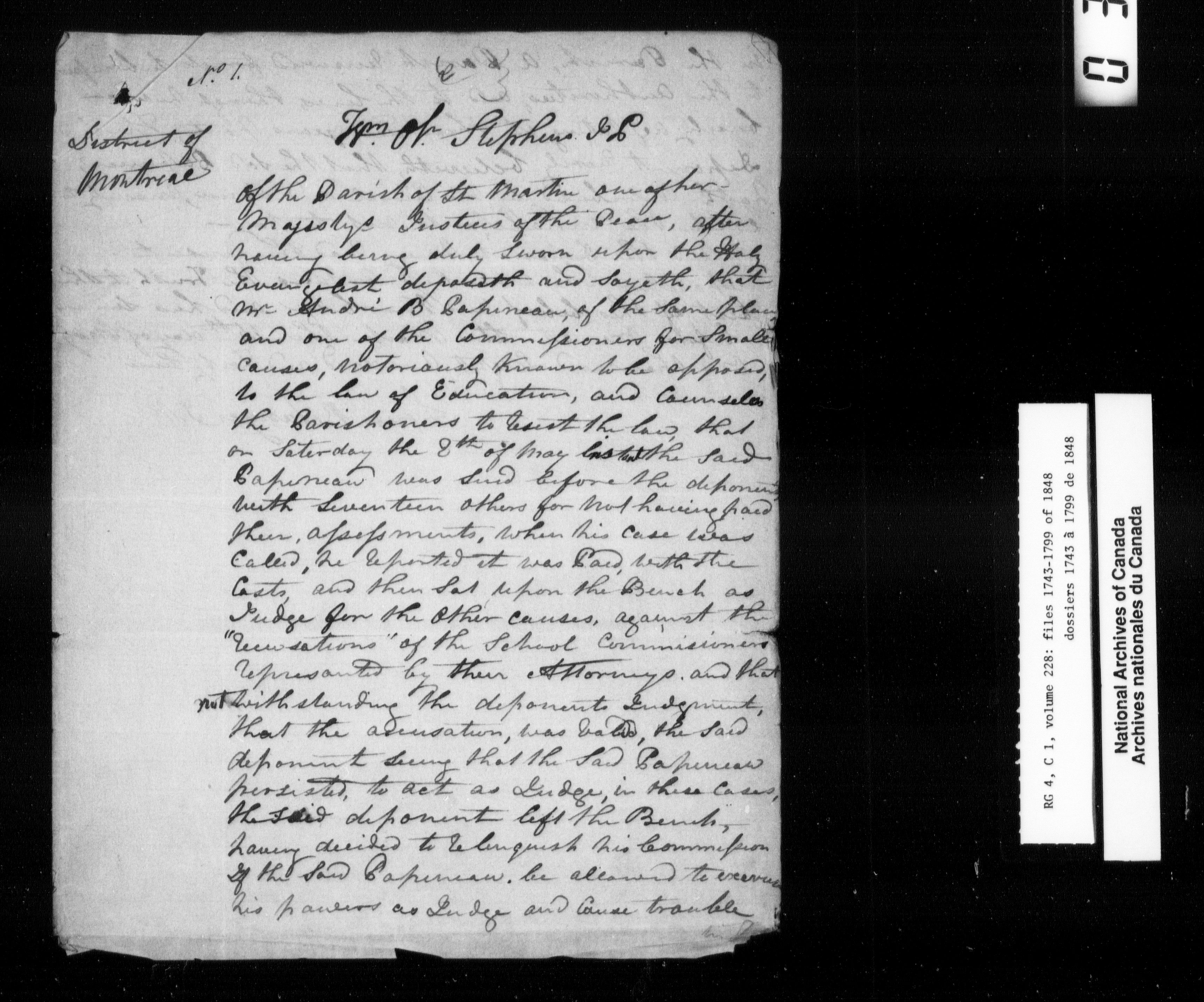 Canada East : Provincial Secretary numbered correspondence files, 1839-1867 : H-2599
