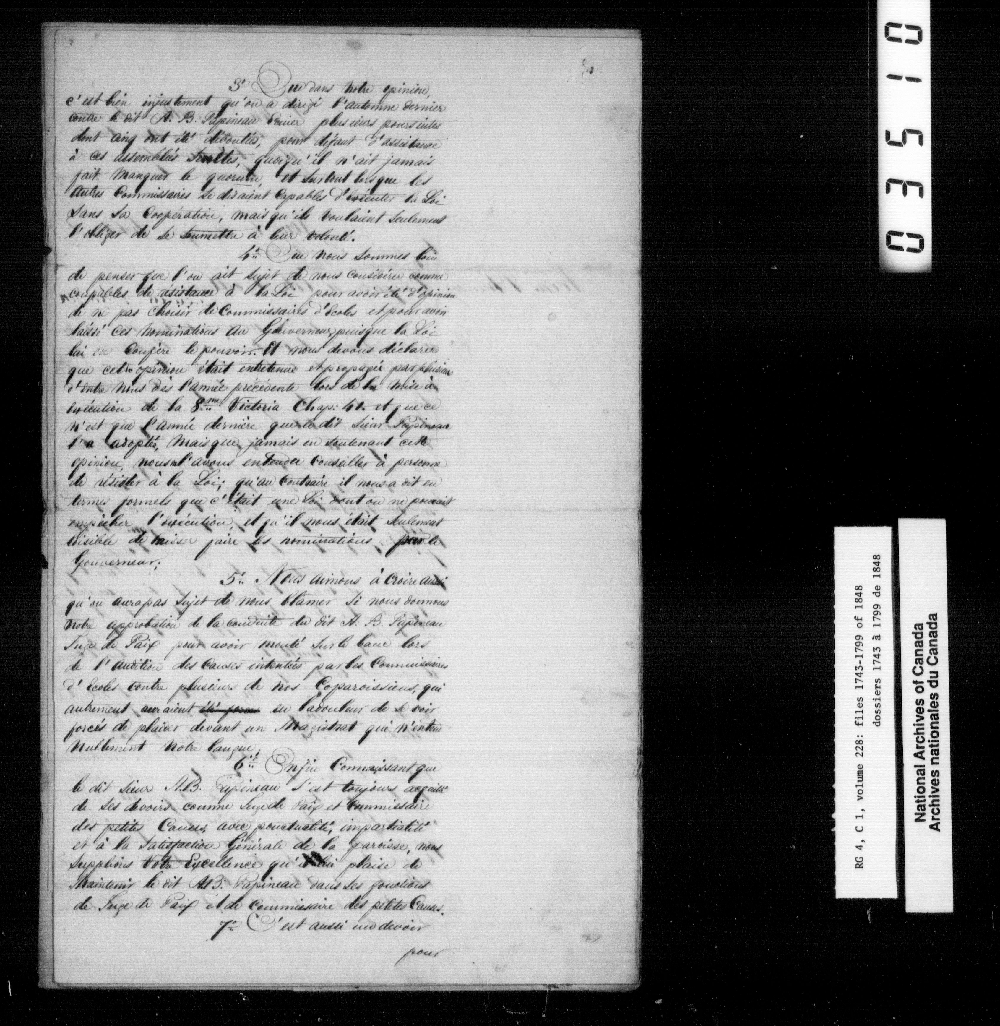 Error in image ask for Images againCanada East : Provincial Secretary numbered correspondence files, 1839-1867 - 2599