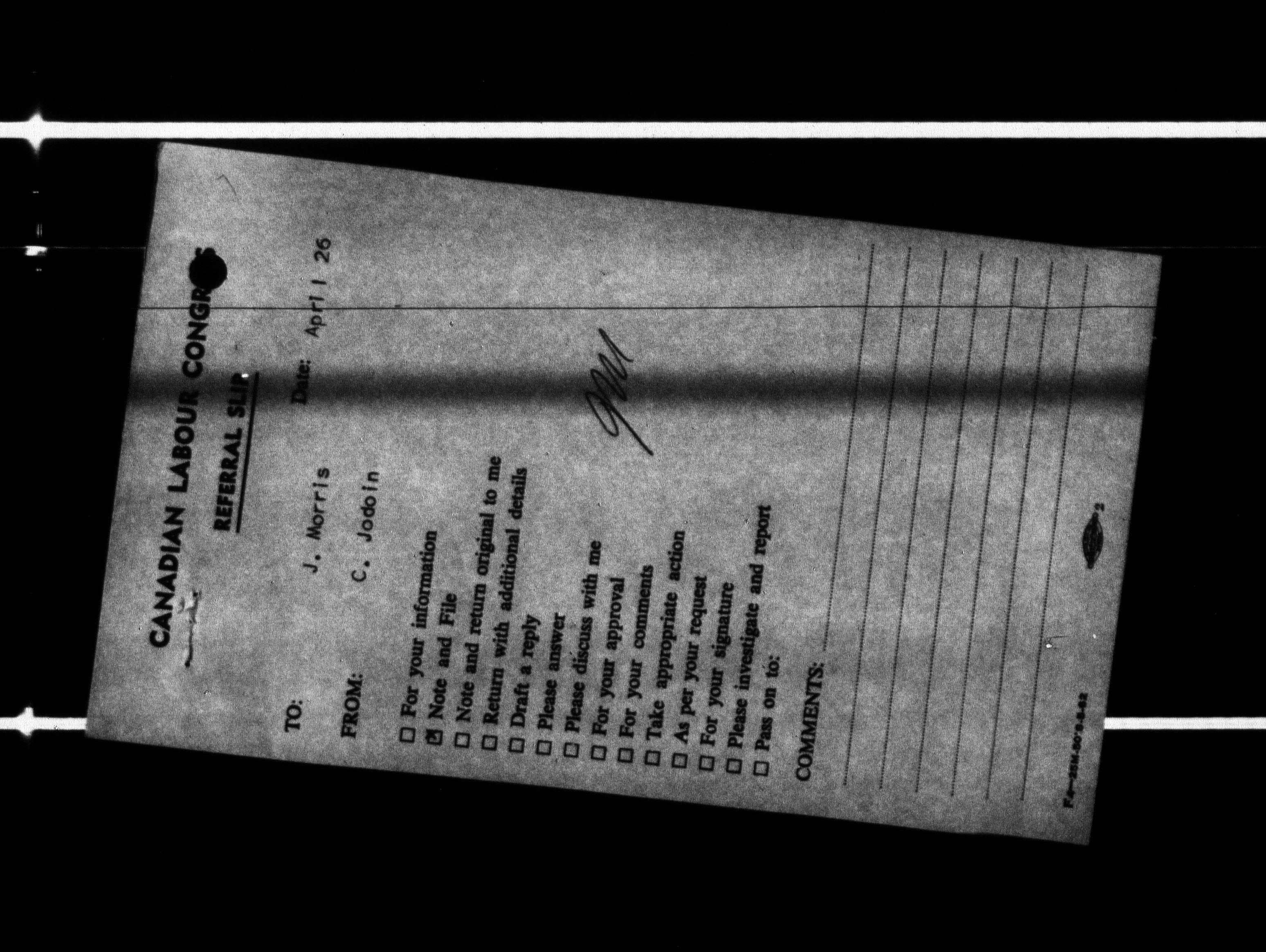 Canadian Labour Congress : Joe Morris, Executive Vice President files : H-260