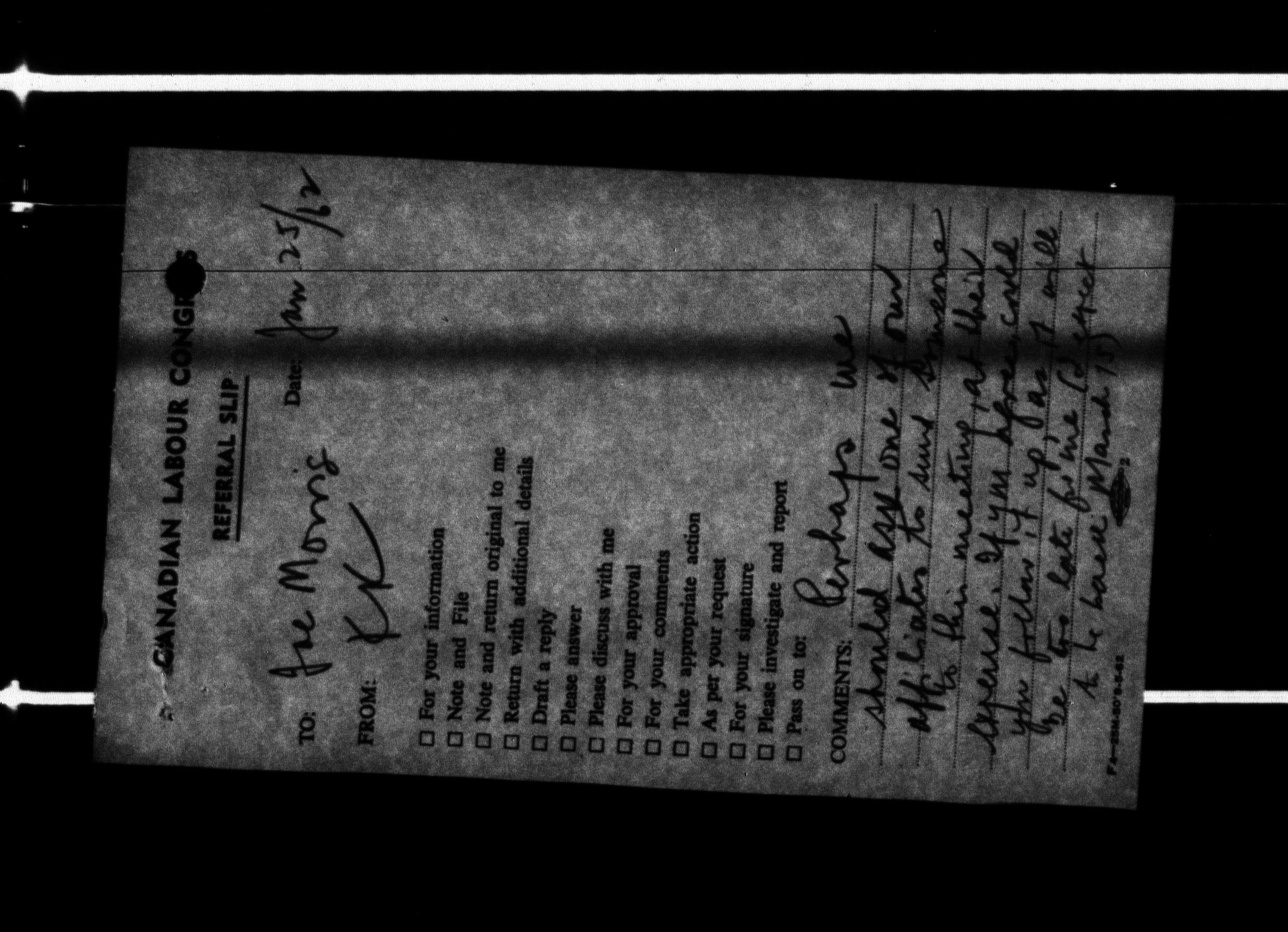 Canadian Labour Congress : Joe Morris, Executive Vice President files : H-260
