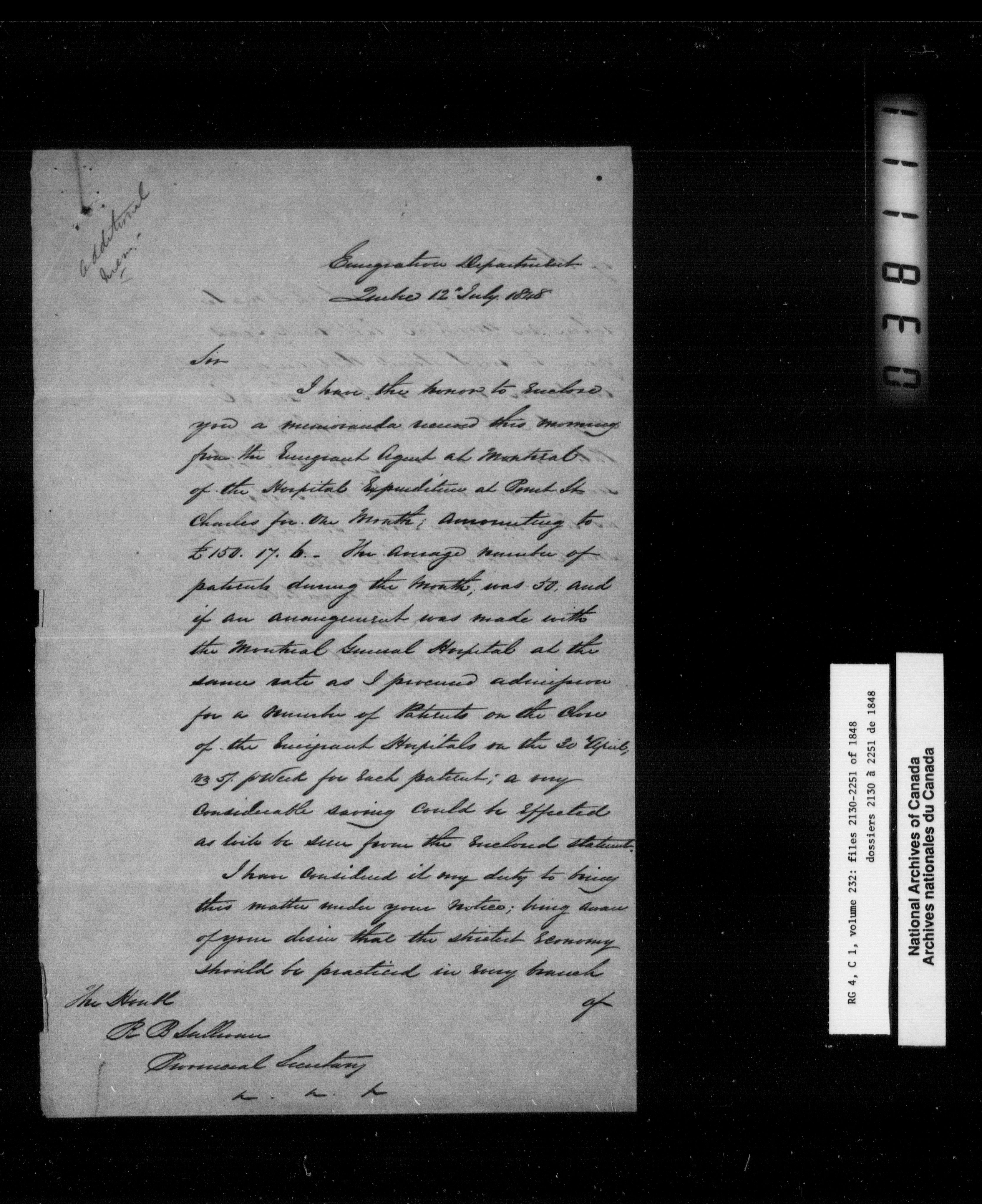 Error in image ask for Images againCanada East : Provincial Secretary numbered correspondence files, 1839-1867 - 2600