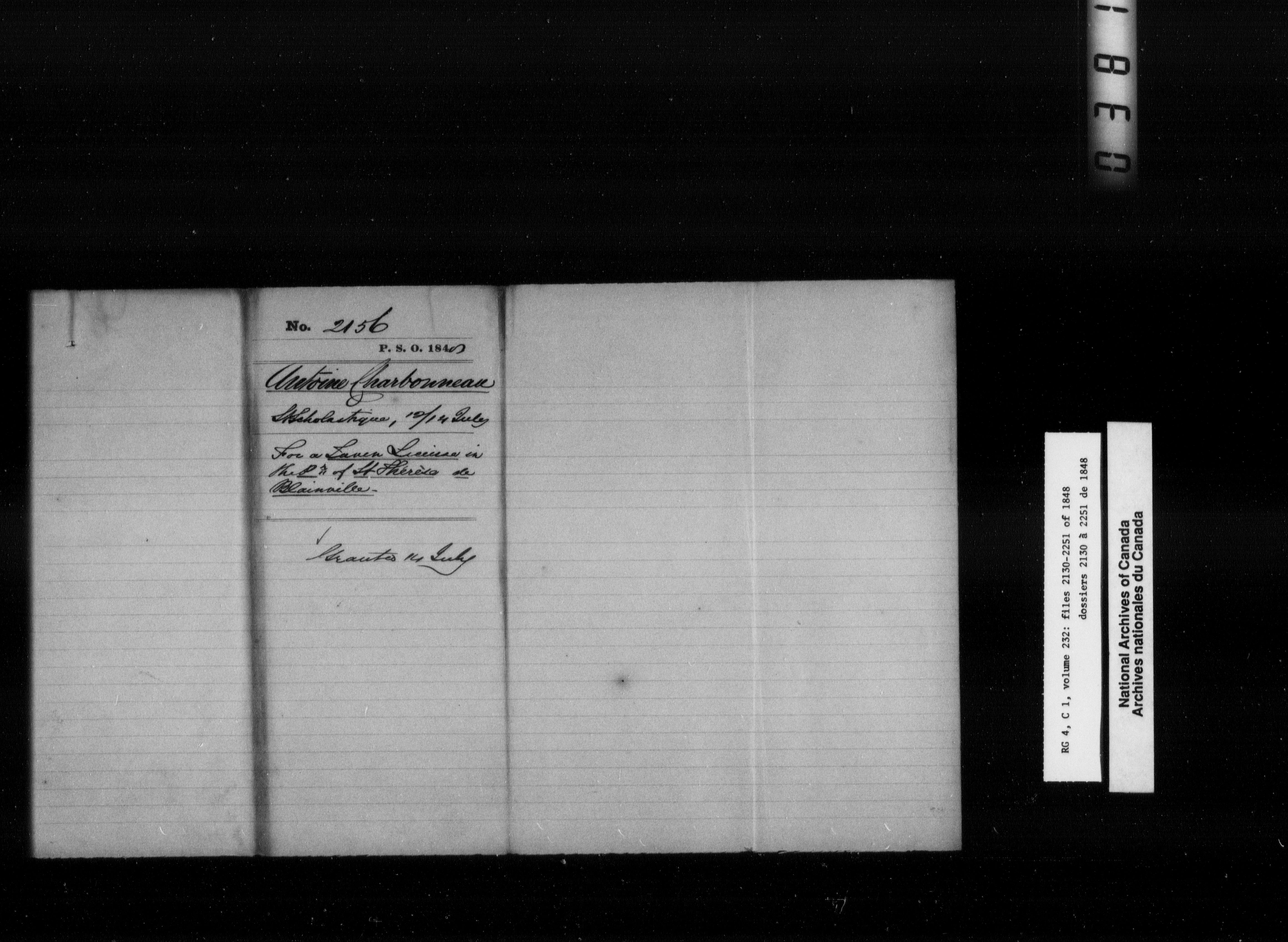 Error in image ask for Images againCanada East : Provincial Secretary numbered correspondence files, 1839-1867 - 2600