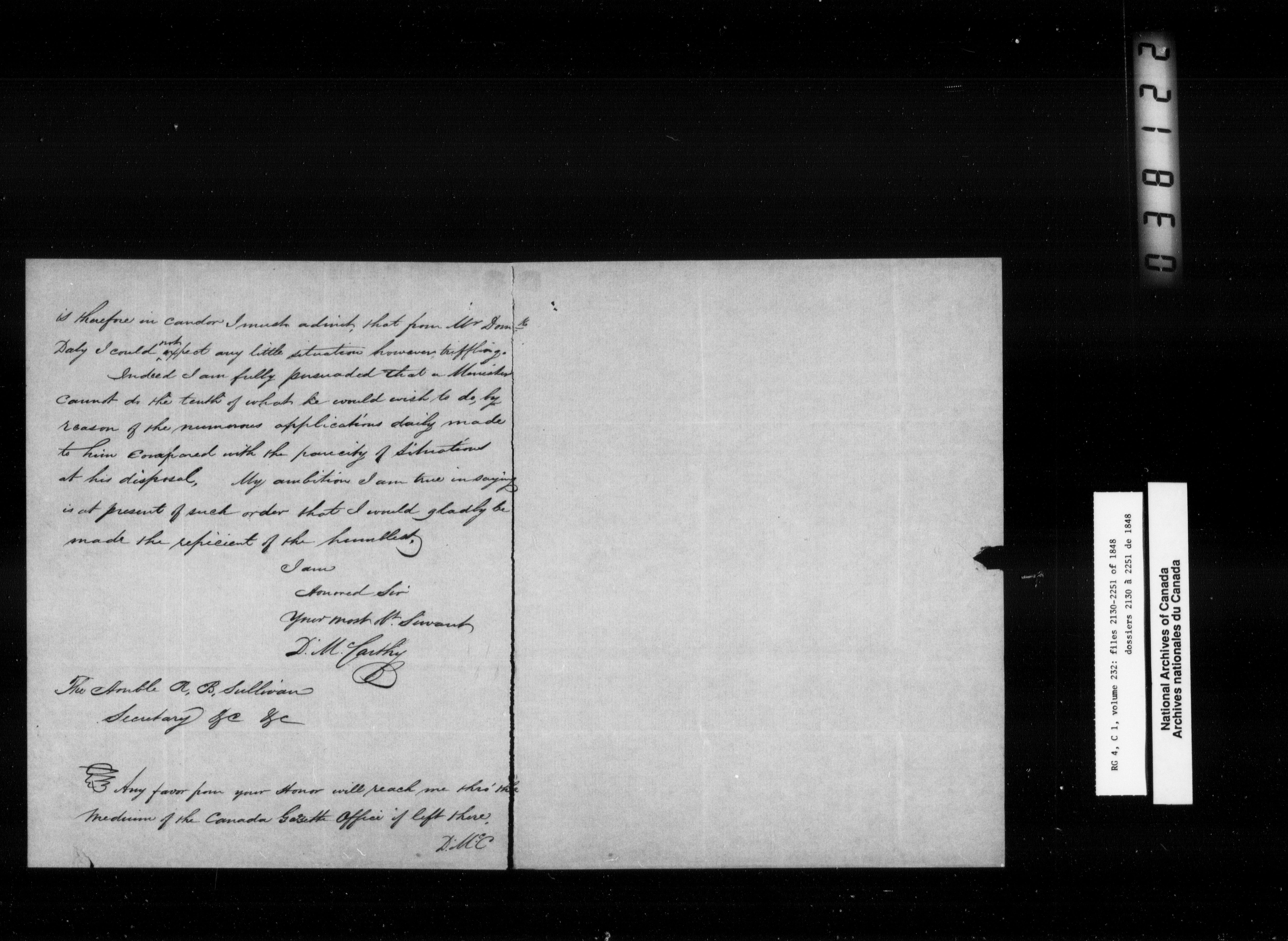Error in image ask for Images againCanada East : Provincial Secretary numbered correspondence files, 1839-1867 - 2600