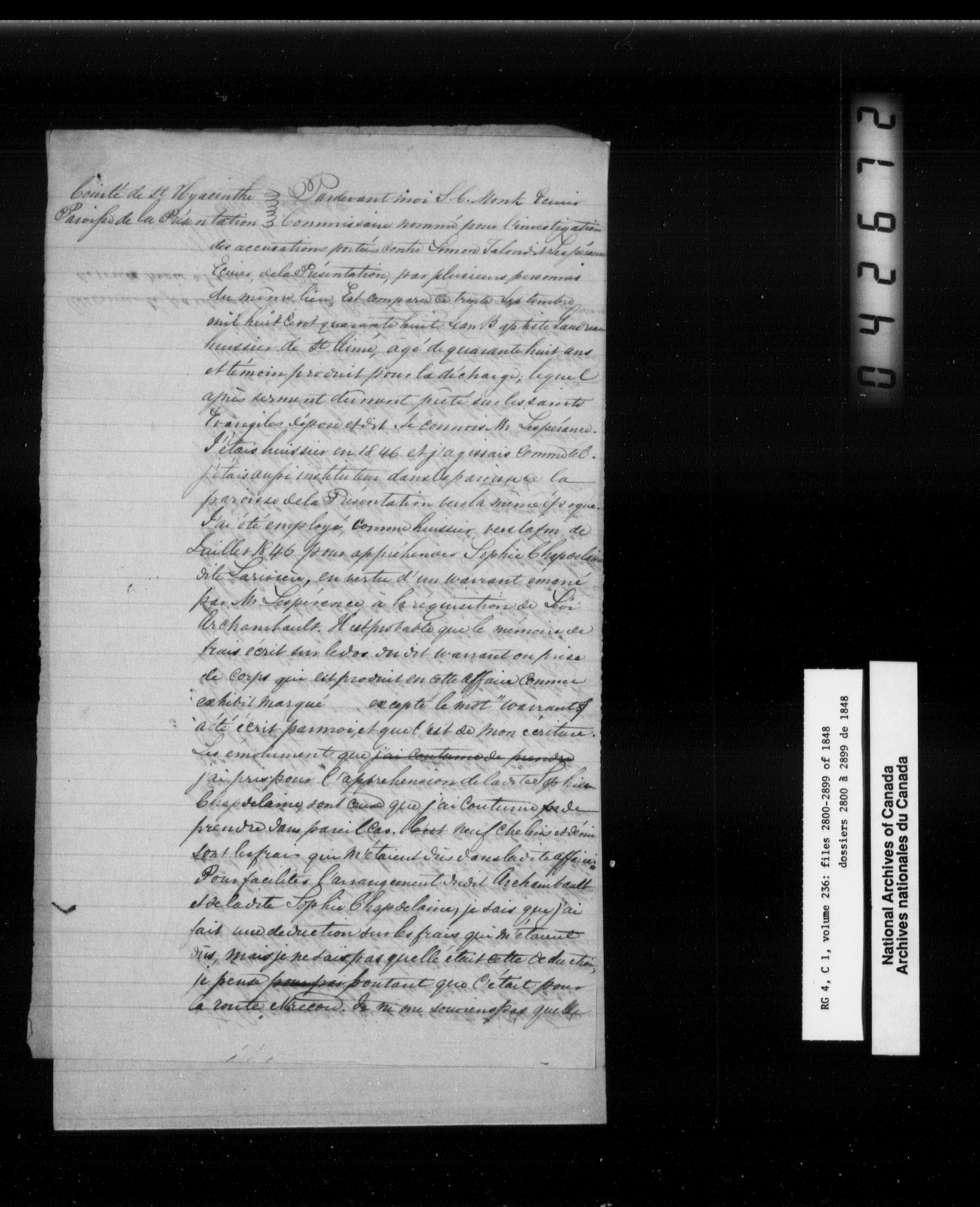 Canada East : Provincial Secretary numbered correspondence files, 1839-1867 - 2603