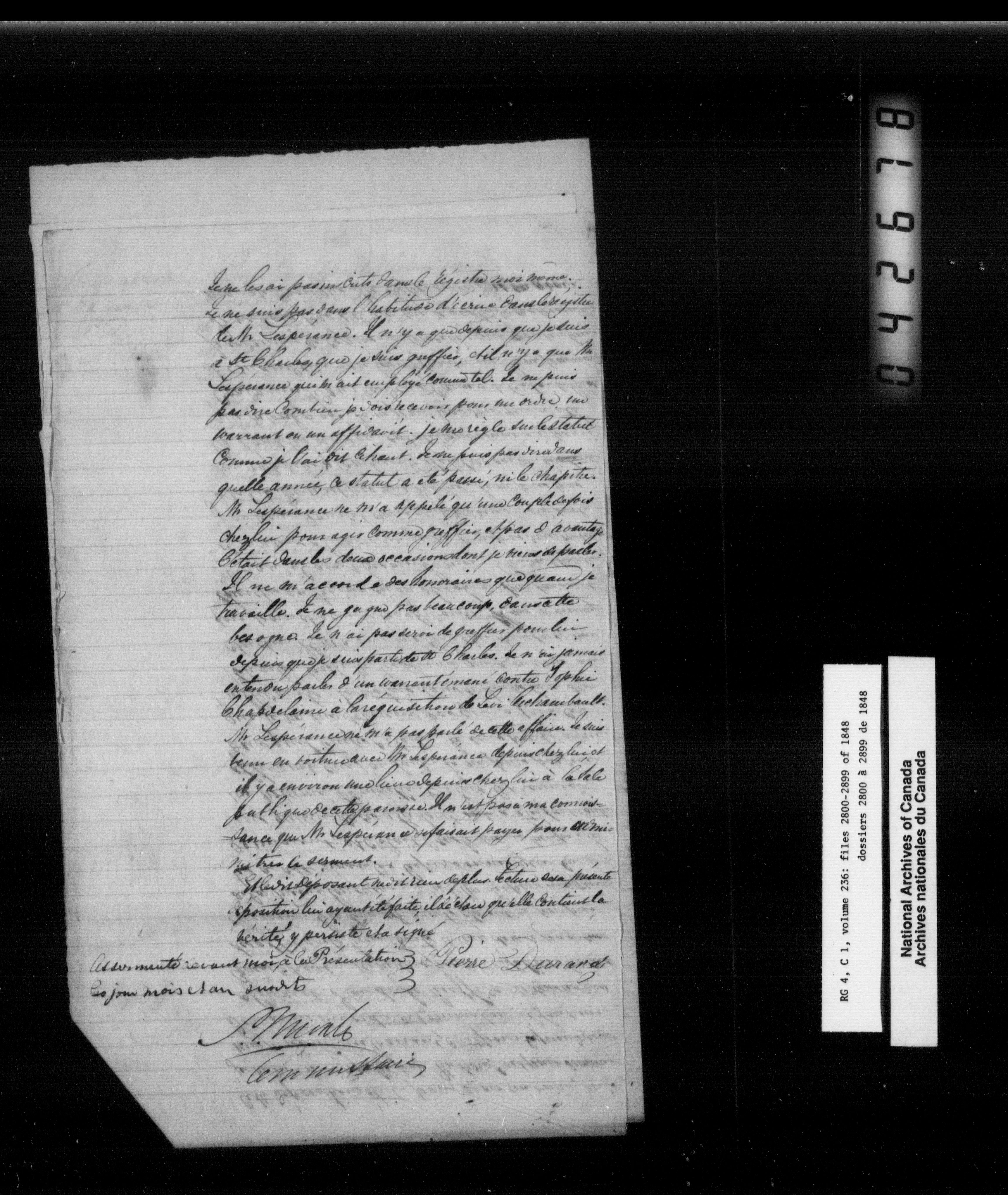 Canada East : Provincial Secretary numbered correspondence files, 1839-1867 - 2603