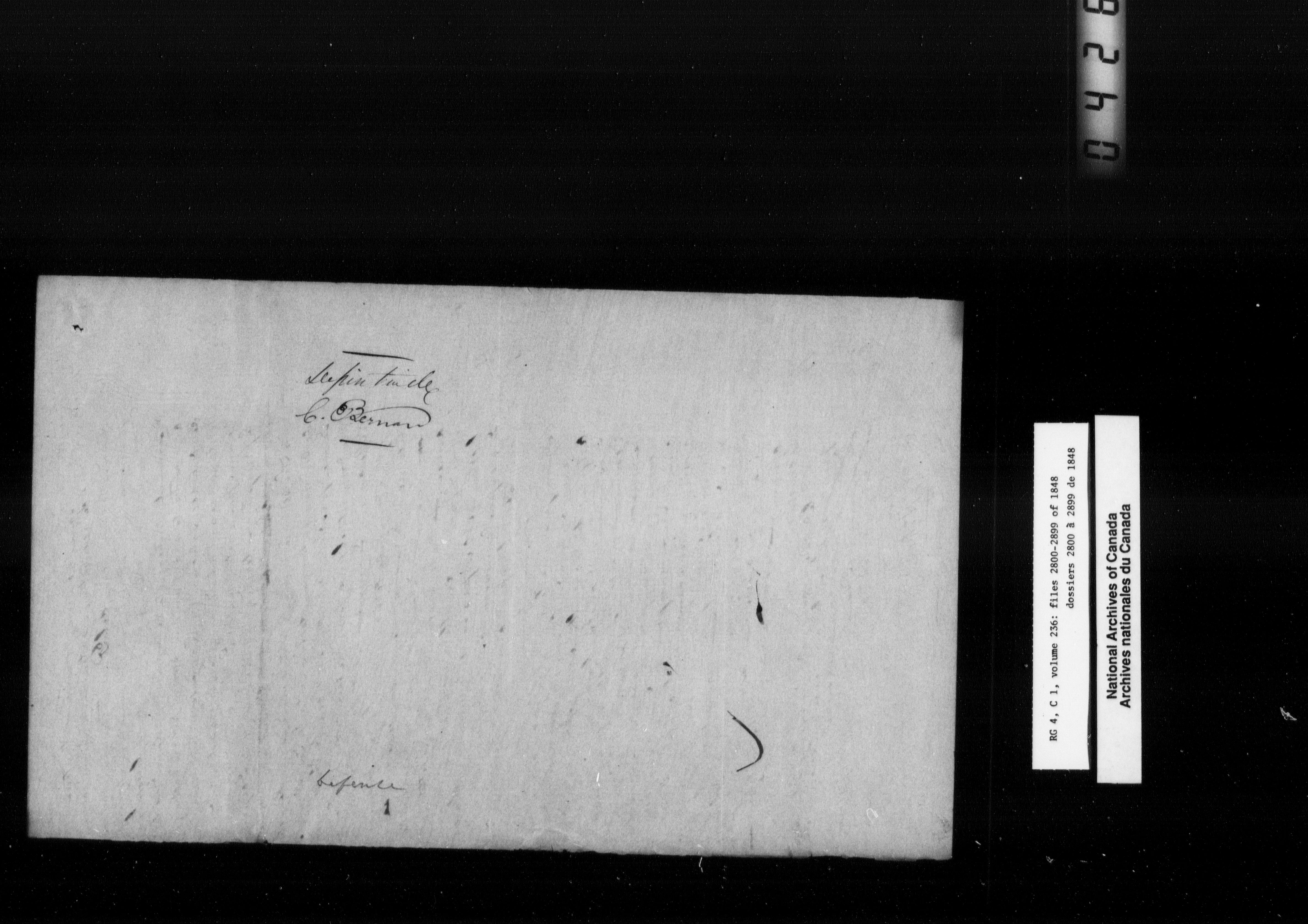 Canada East : Provincial Secretary numbered correspondence files, 1839-1867 - 2603