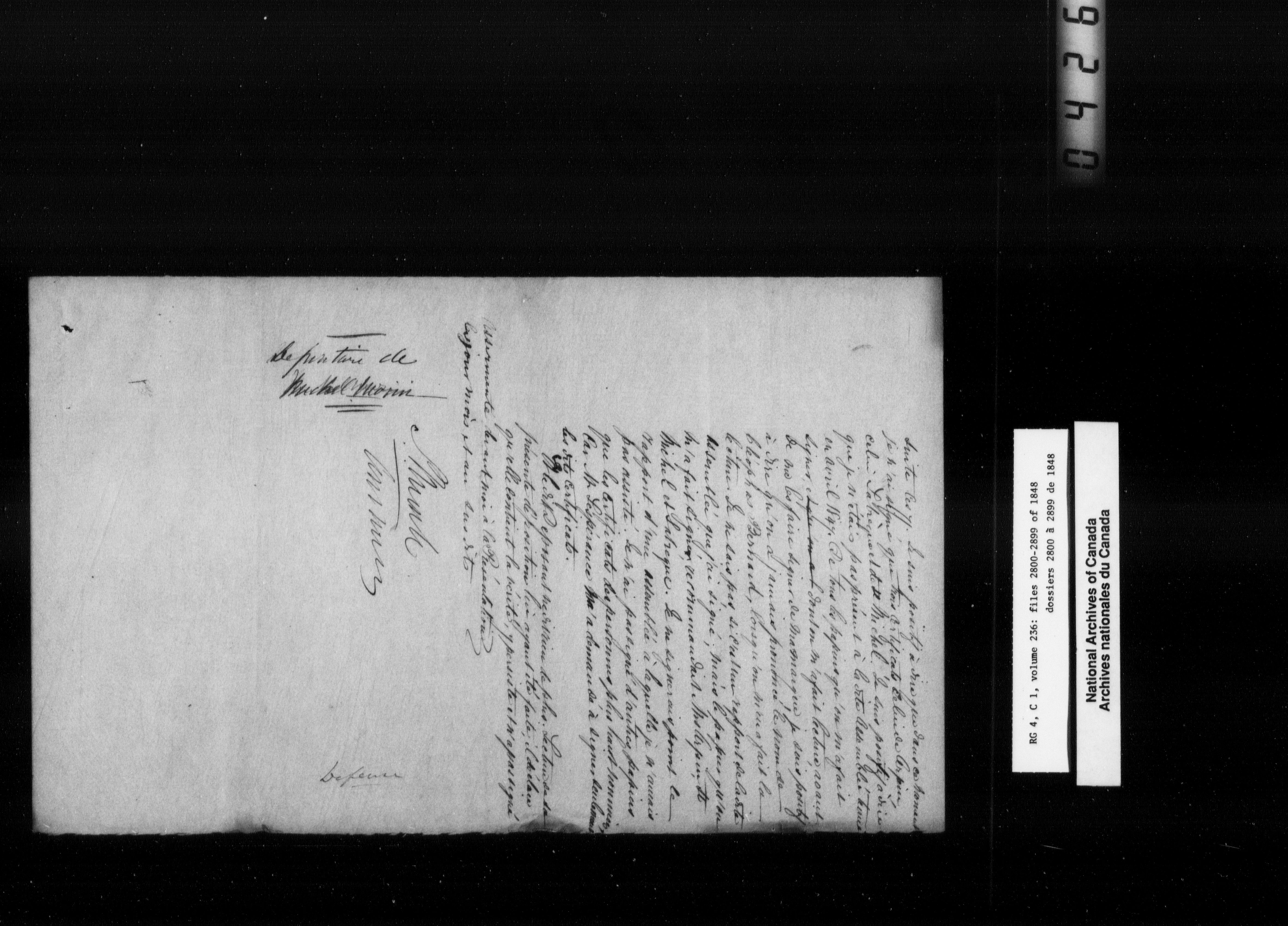 Canada East : Provincial Secretary numbered correspondence files, 1839-1867 - 2603