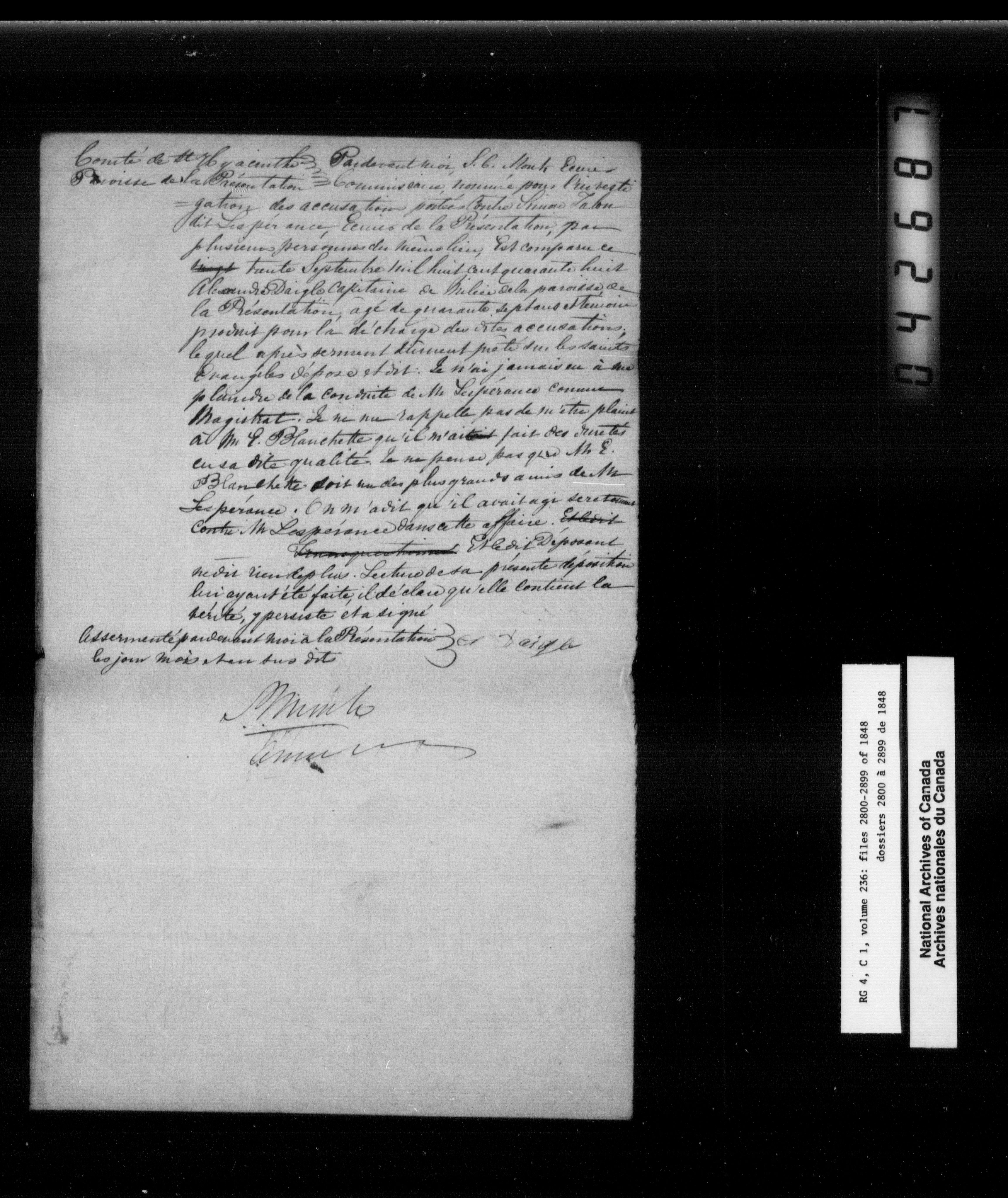 Canada East : Provincial Secretary numbered correspondence files, 1839-1867 - 2603