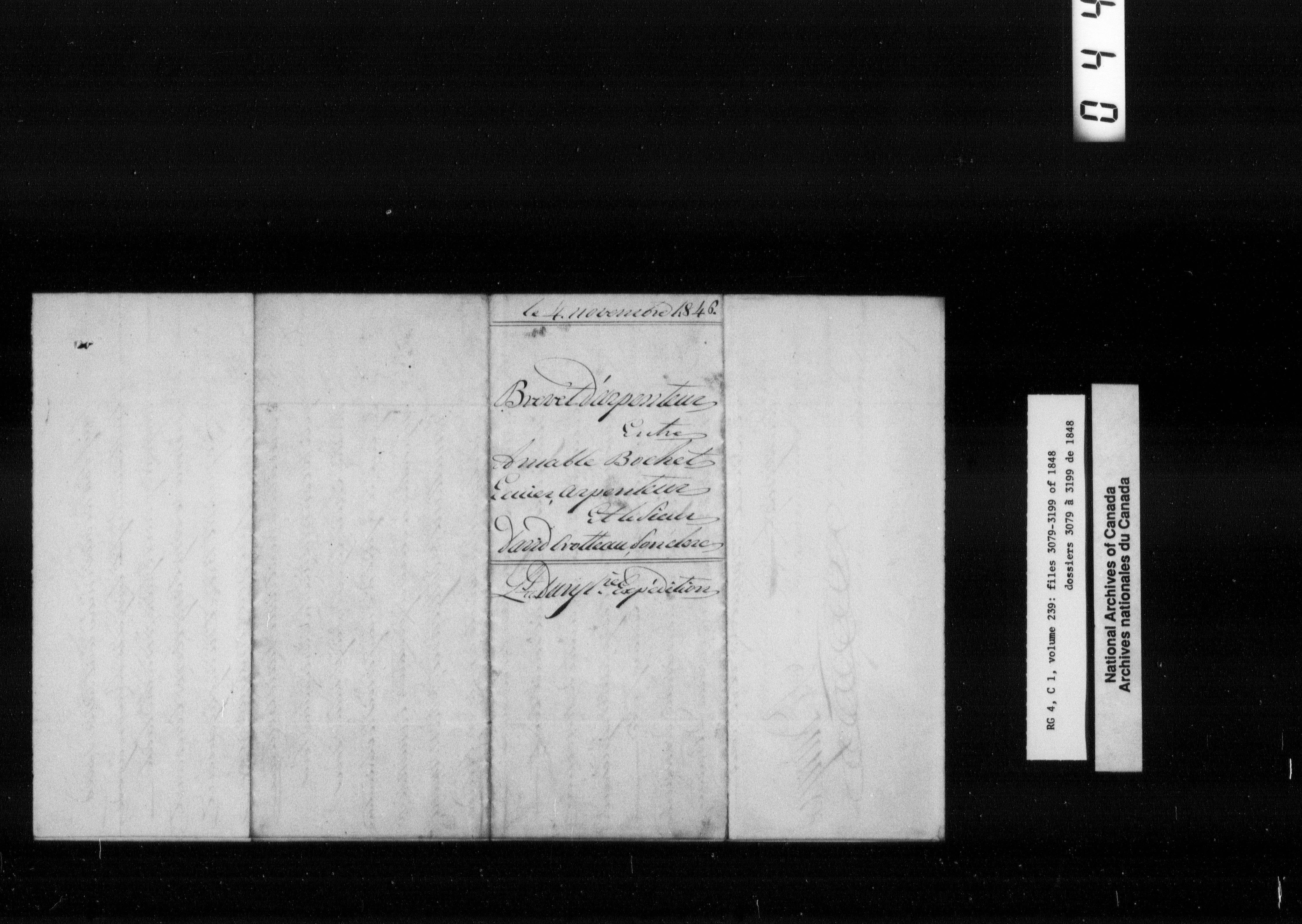 Canada East : Provincial Secretary numbered correspondence files, 1839-1867 - 2605