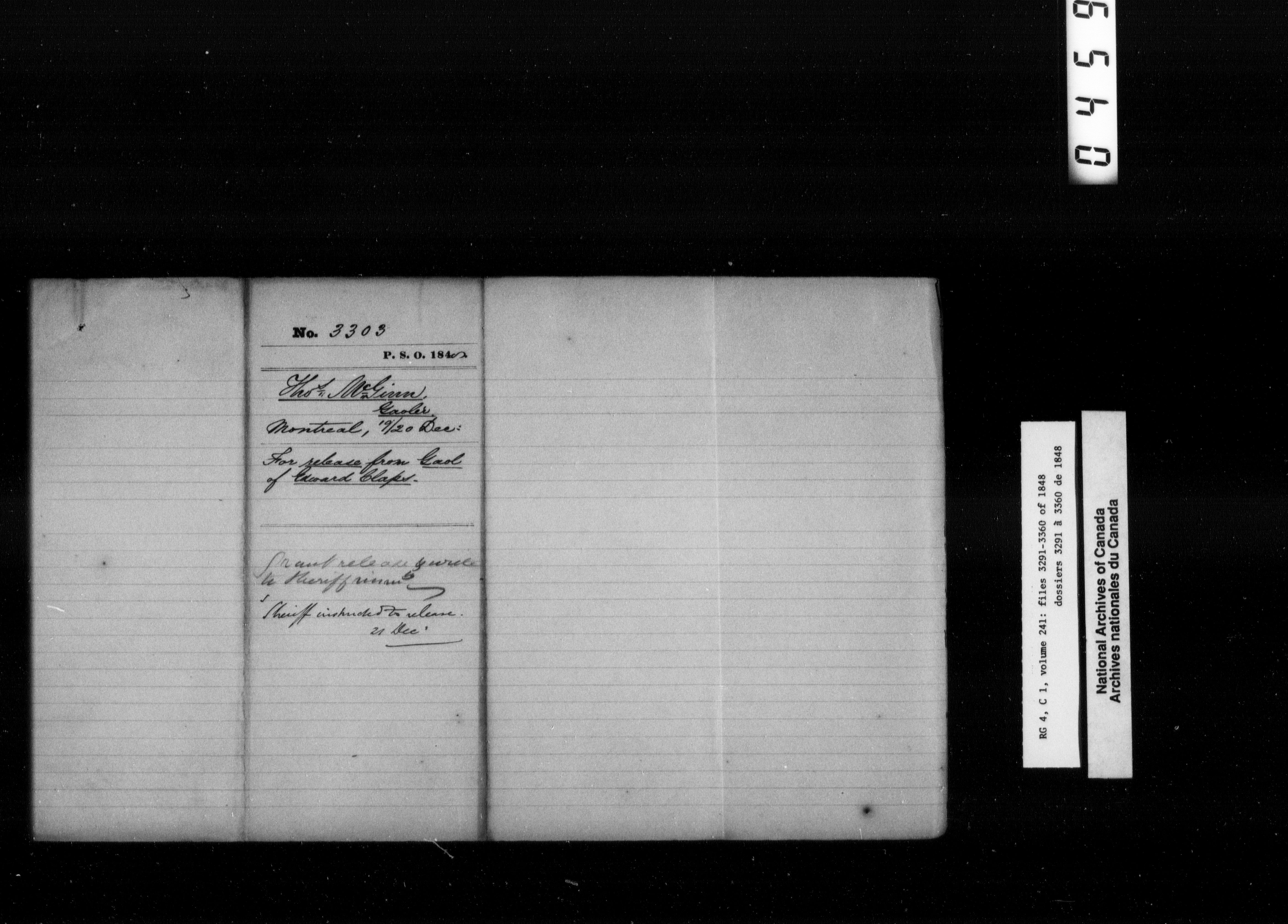 Canada East : Provincial Secretary numbered correspondence files, 1839-1867 - 2606