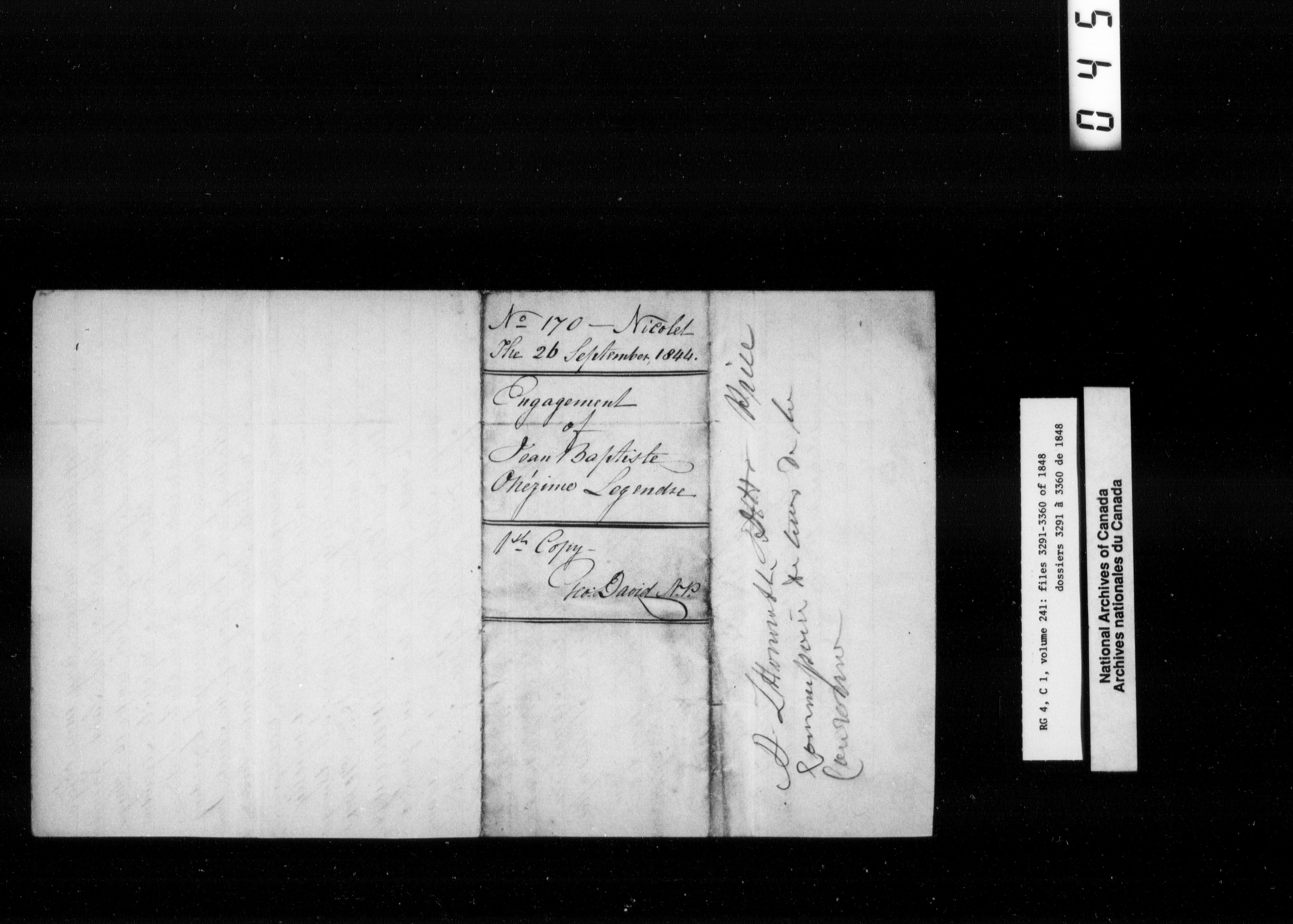 Canada East : Provincial Secretary numbered correspondence files, 1839-1867 - 2606