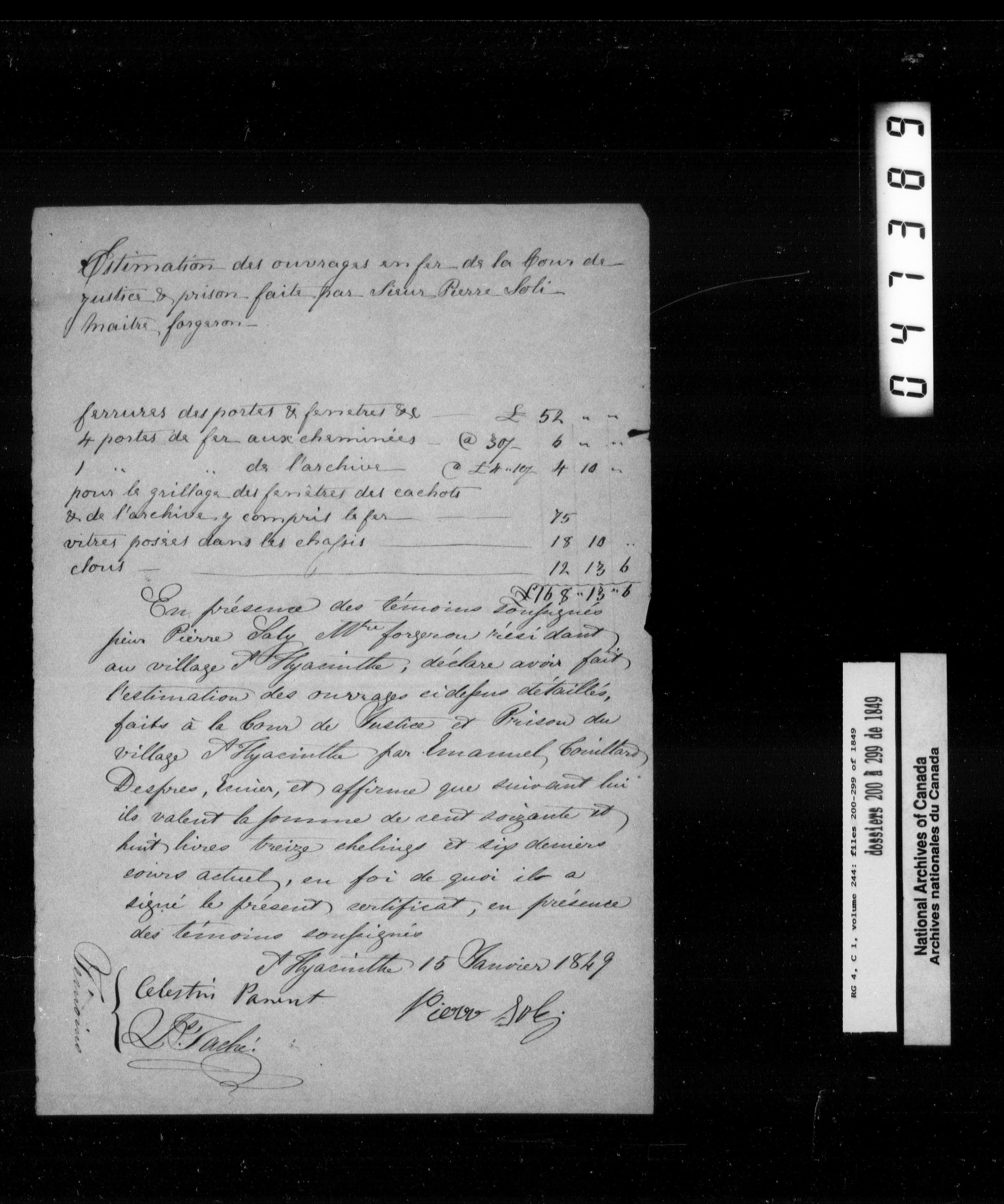 Canada East : Provincial Secretary numbered correspondence files, 1839-1867 - 2607