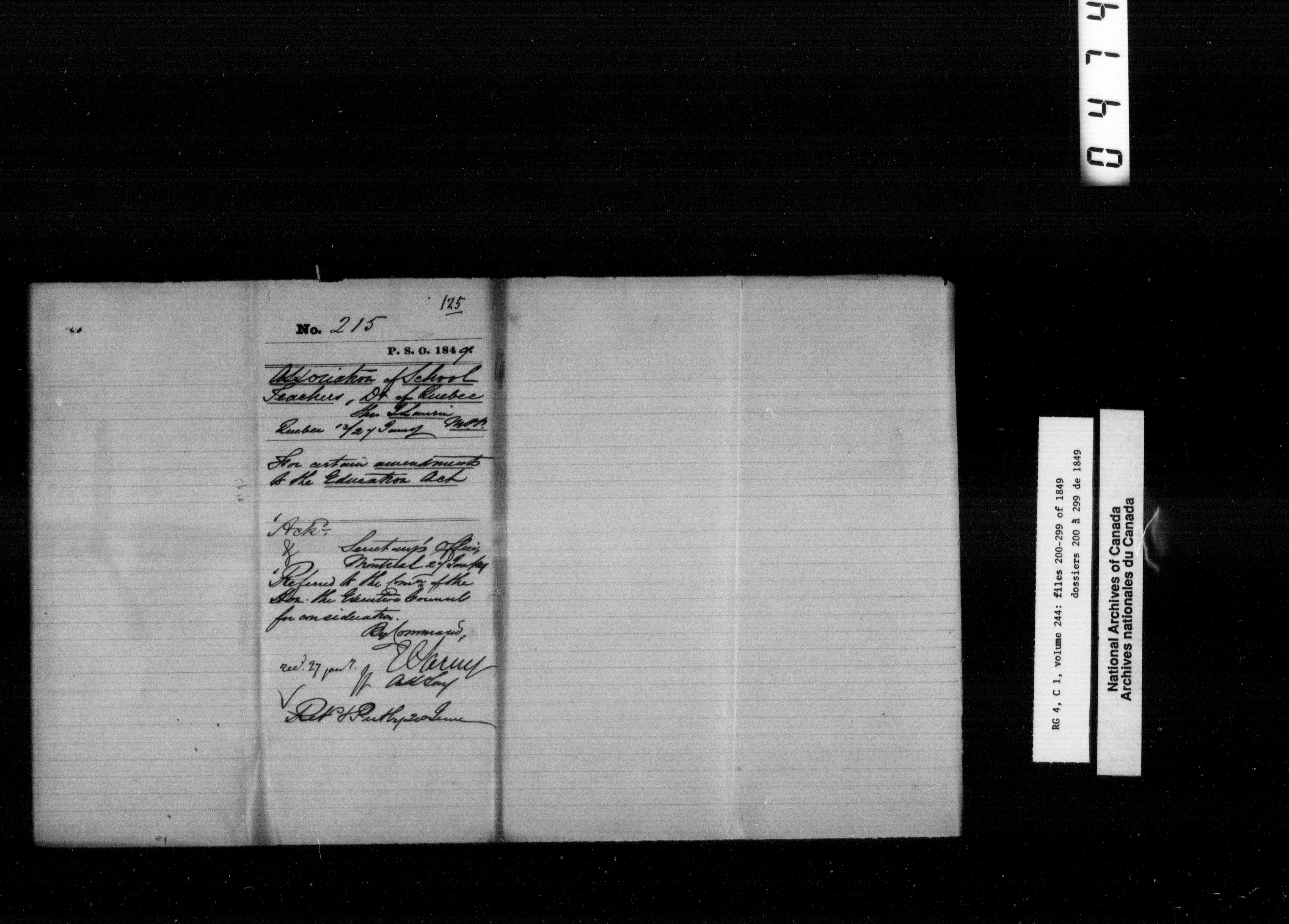 Canada East : Provincial Secretary numbered correspondence files, 1839-1867 - 2607
