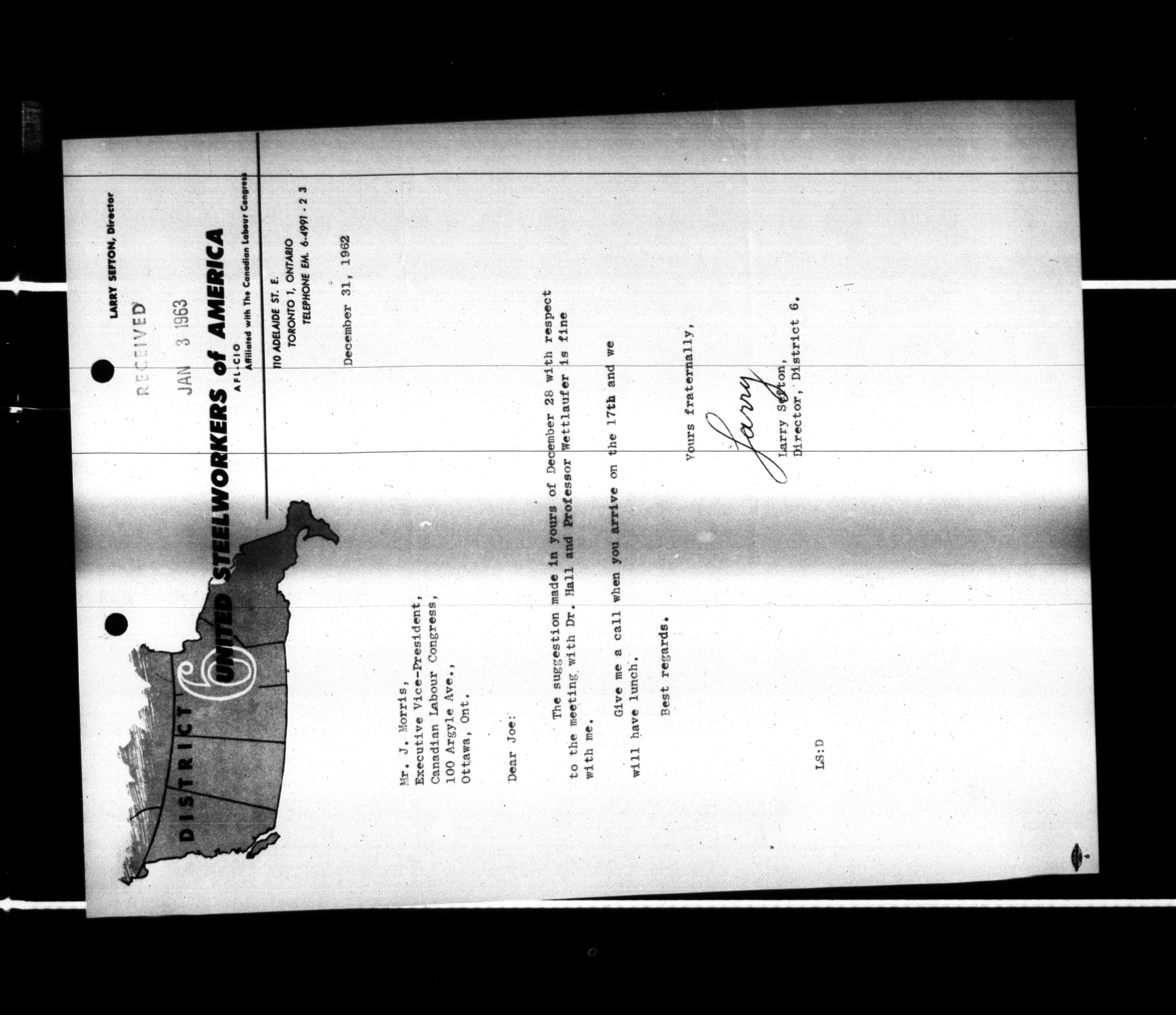 Canadian Labour Congress : Joe Morris, Executive Vice President files : H-261