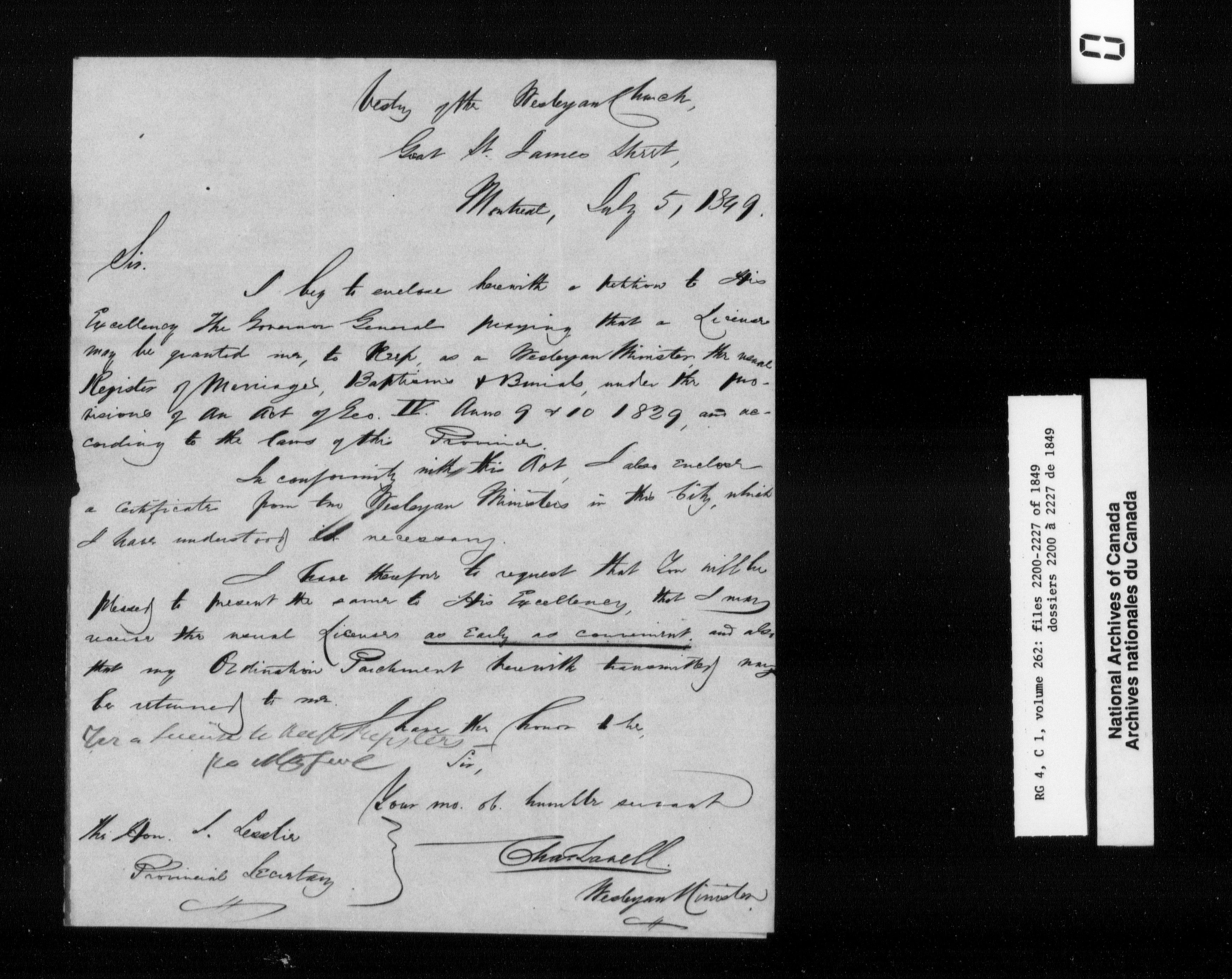 Canada East : Provincial Secretary numbered correspondence files, 1839-1867 - 2615