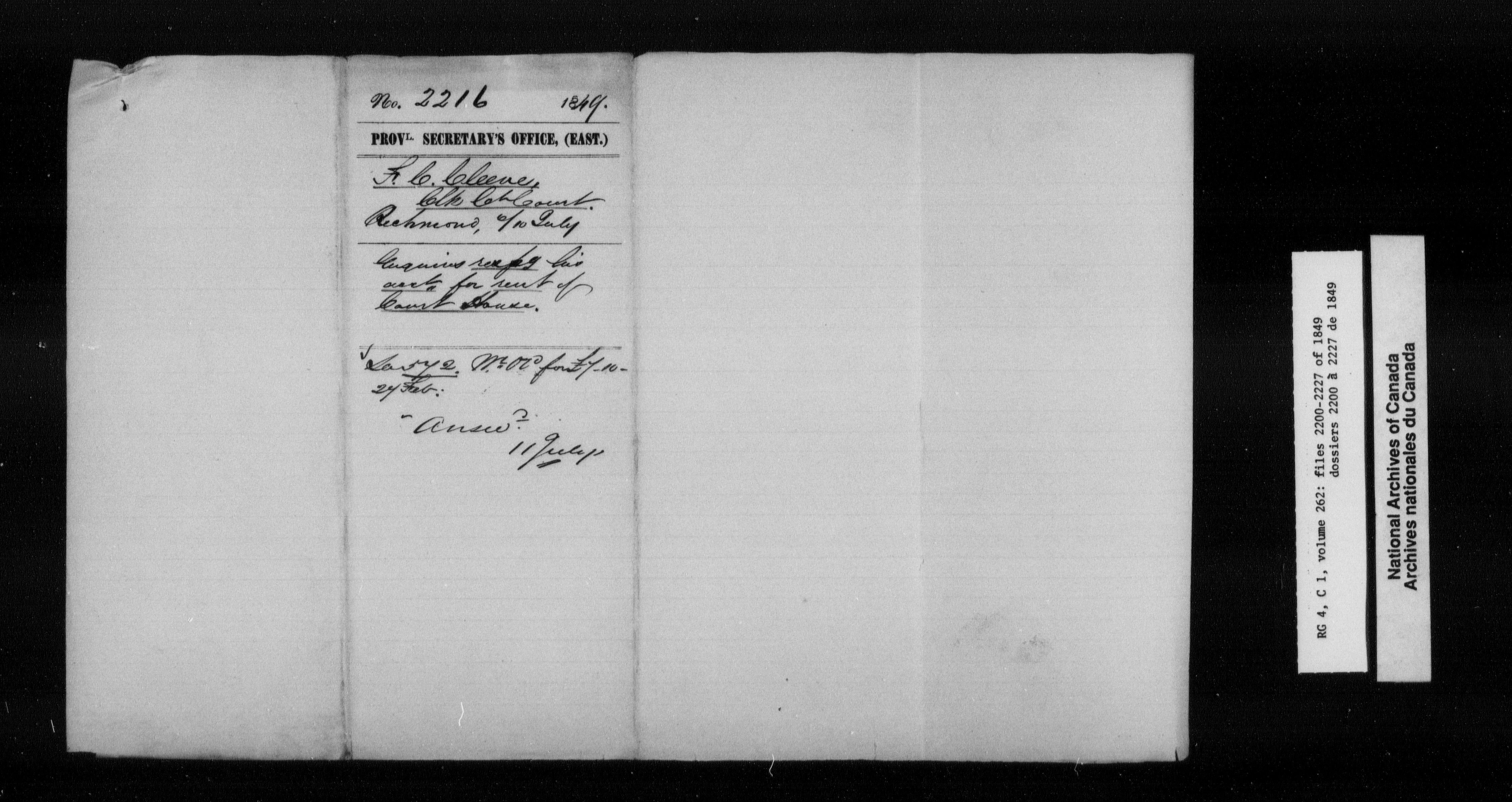 Canada East : Provincial Secretary numbered correspondence files, 1839-1867 - 2615