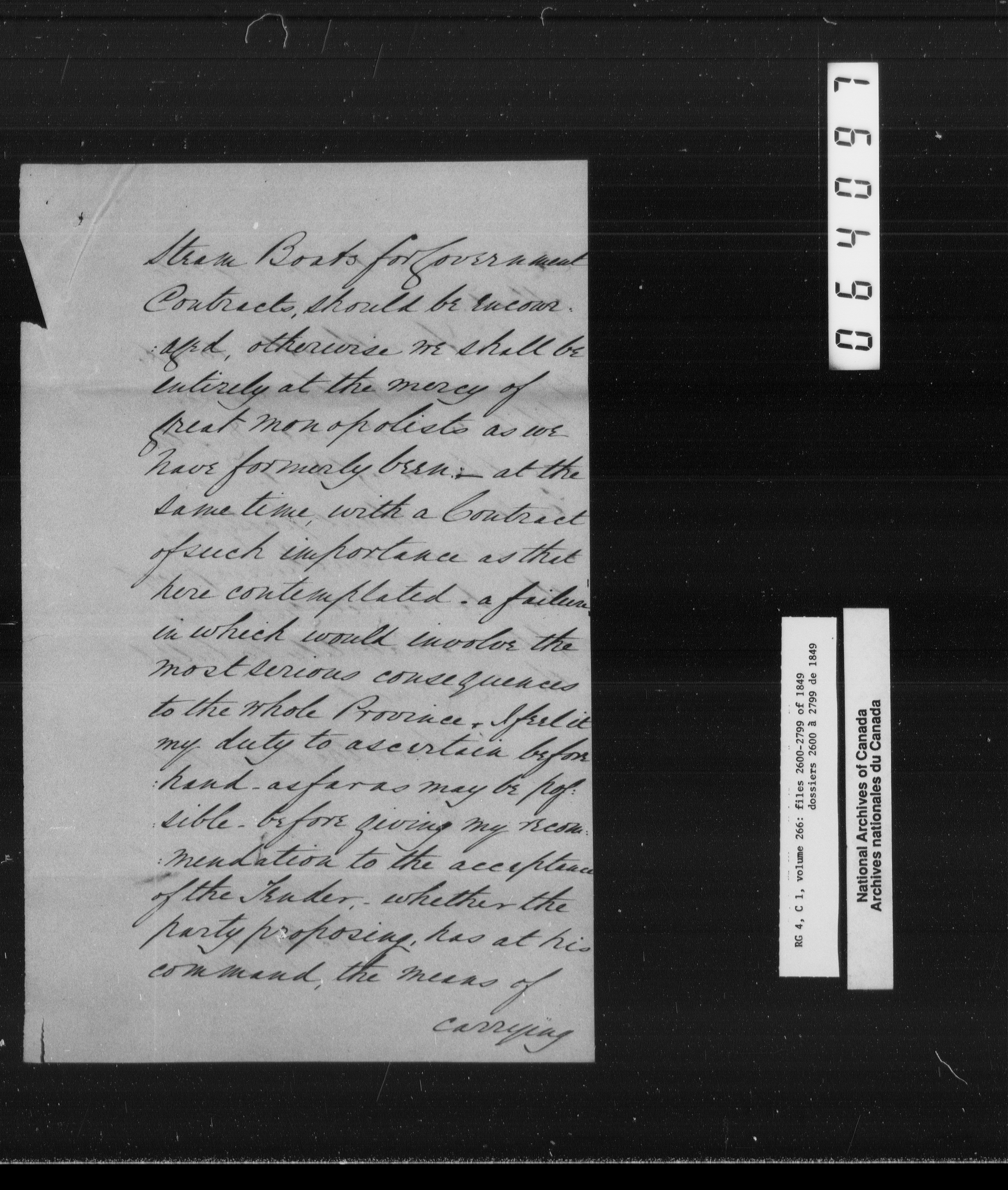 Canada East : Provincial Secretary numbered correspondence files, 1839-1867 - 2618