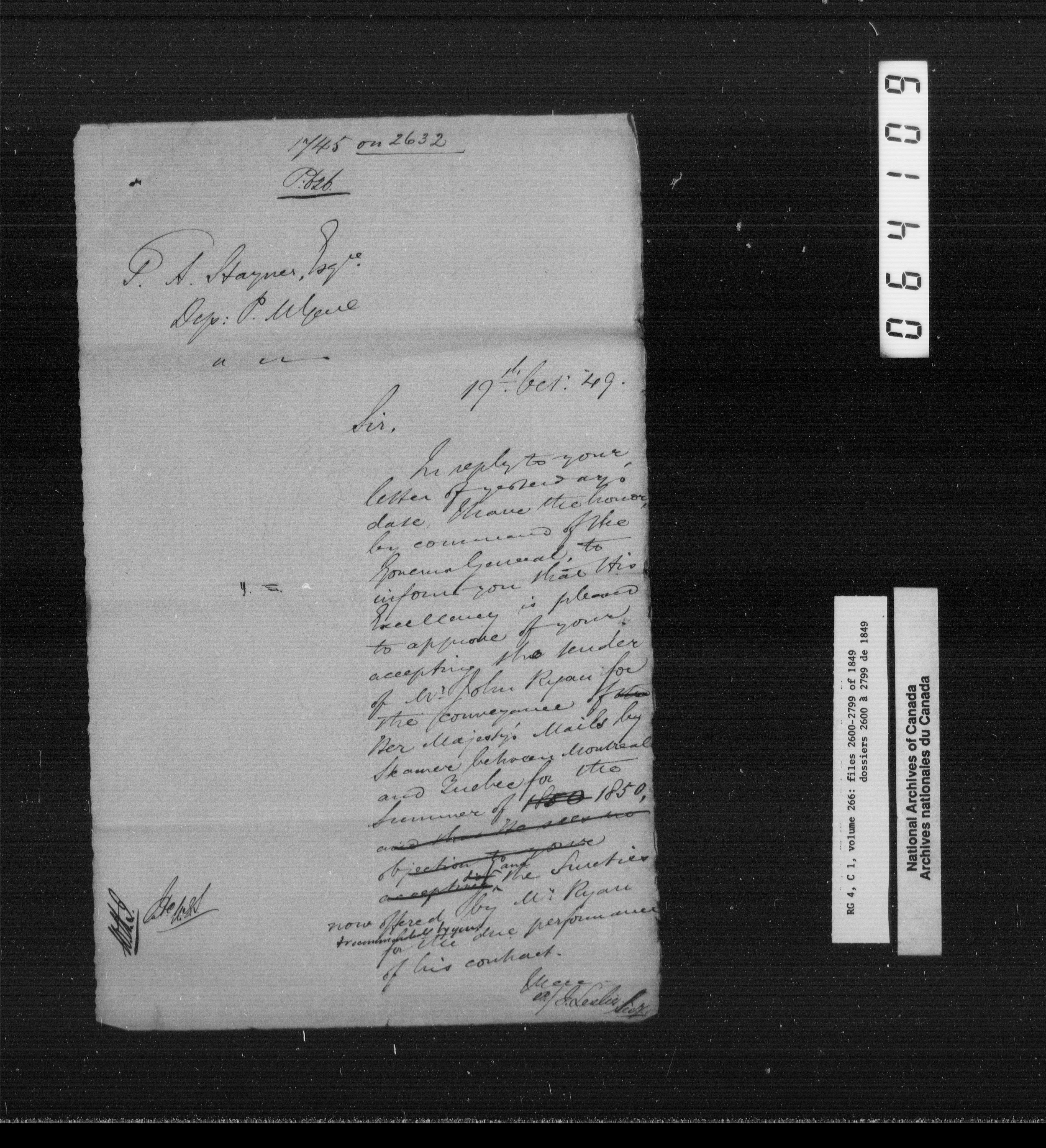 Canada East : Provincial Secretary numbered correspondence files, 1839-1867 - 2618