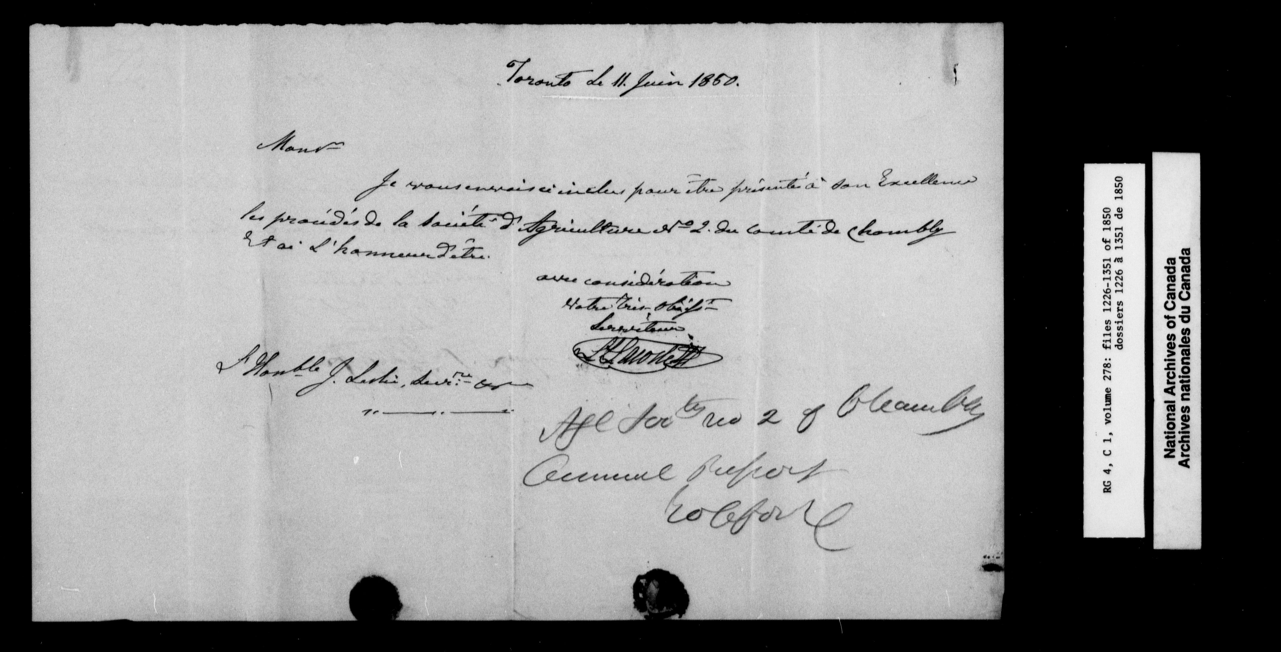 Canada East : Provincial Secretary numbered correspondence files, 1839-1867 - 2626