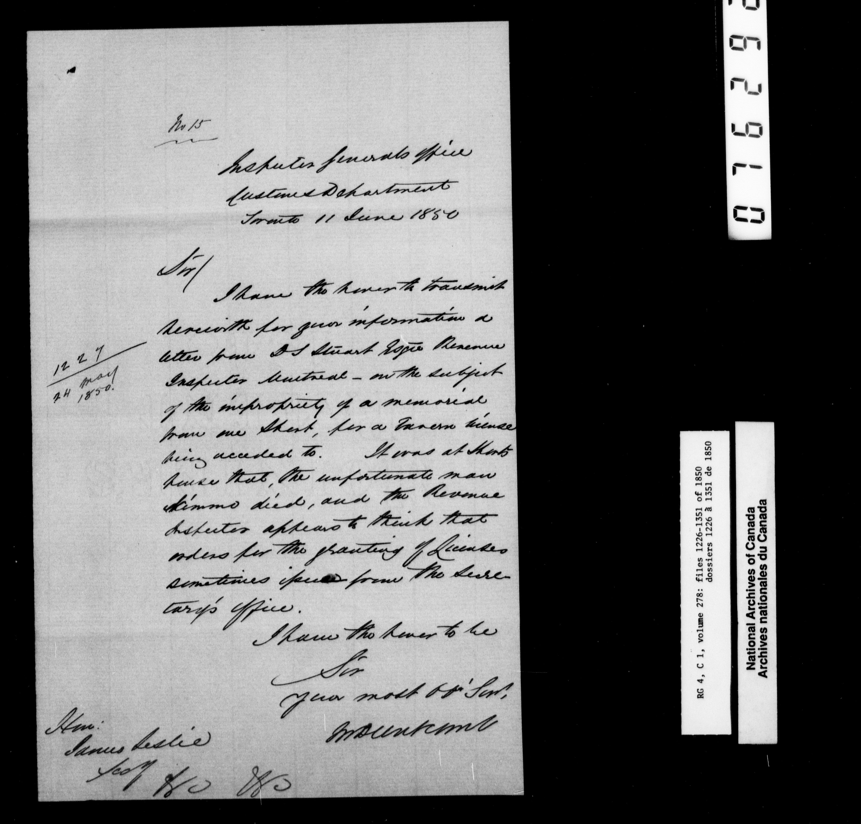 Canada East : Provincial Secretary numbered correspondence files, 1839-1867 - 2626