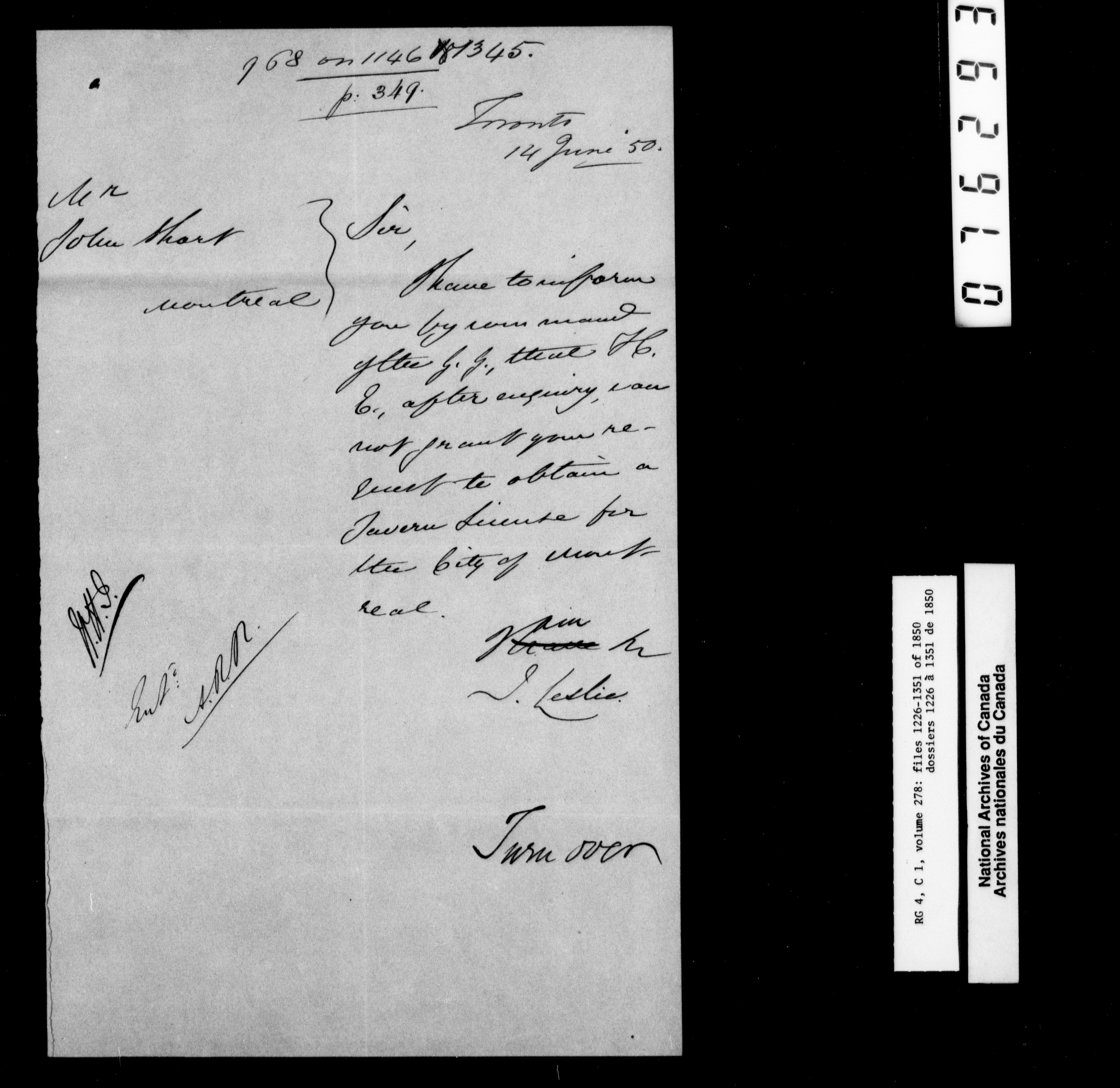 Canada East : Provincial Secretary numbered correspondence files, 1839-1867 - 2626