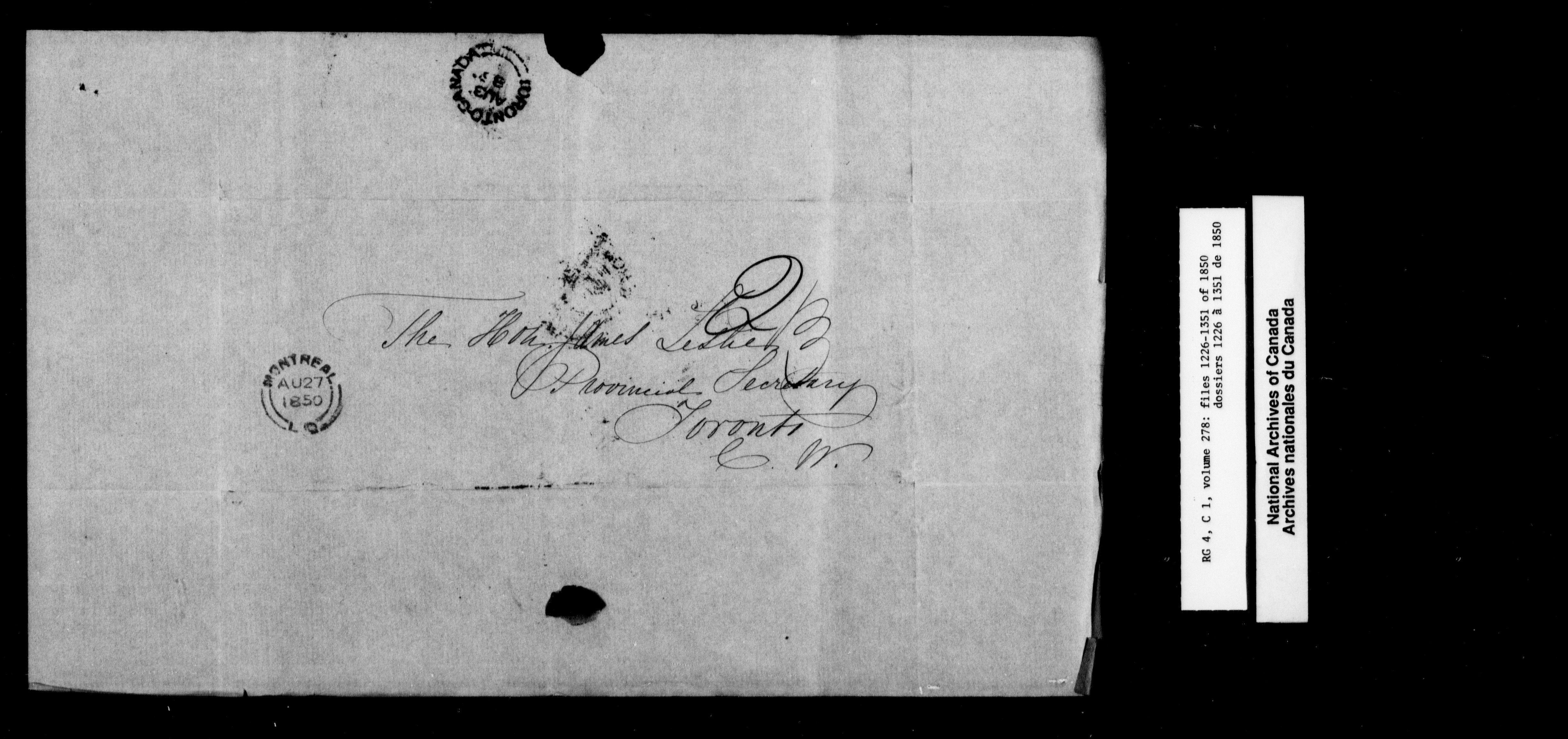 Canada East : Provincial Secretary numbered correspondence files, 1839-1867 - 2626