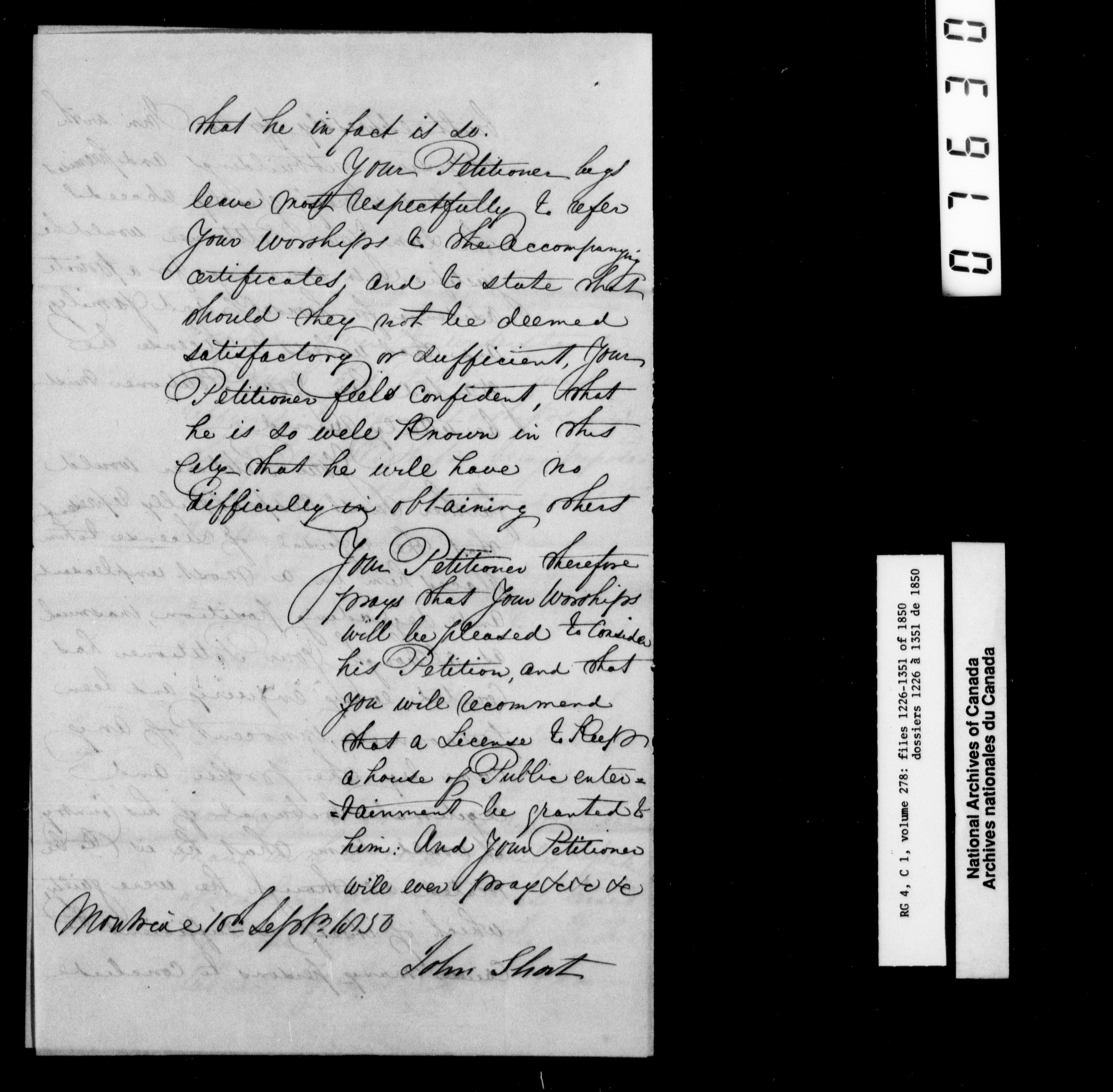 Canada East : Provincial Secretary numbered correspondence files, 1839-1867 - 2626