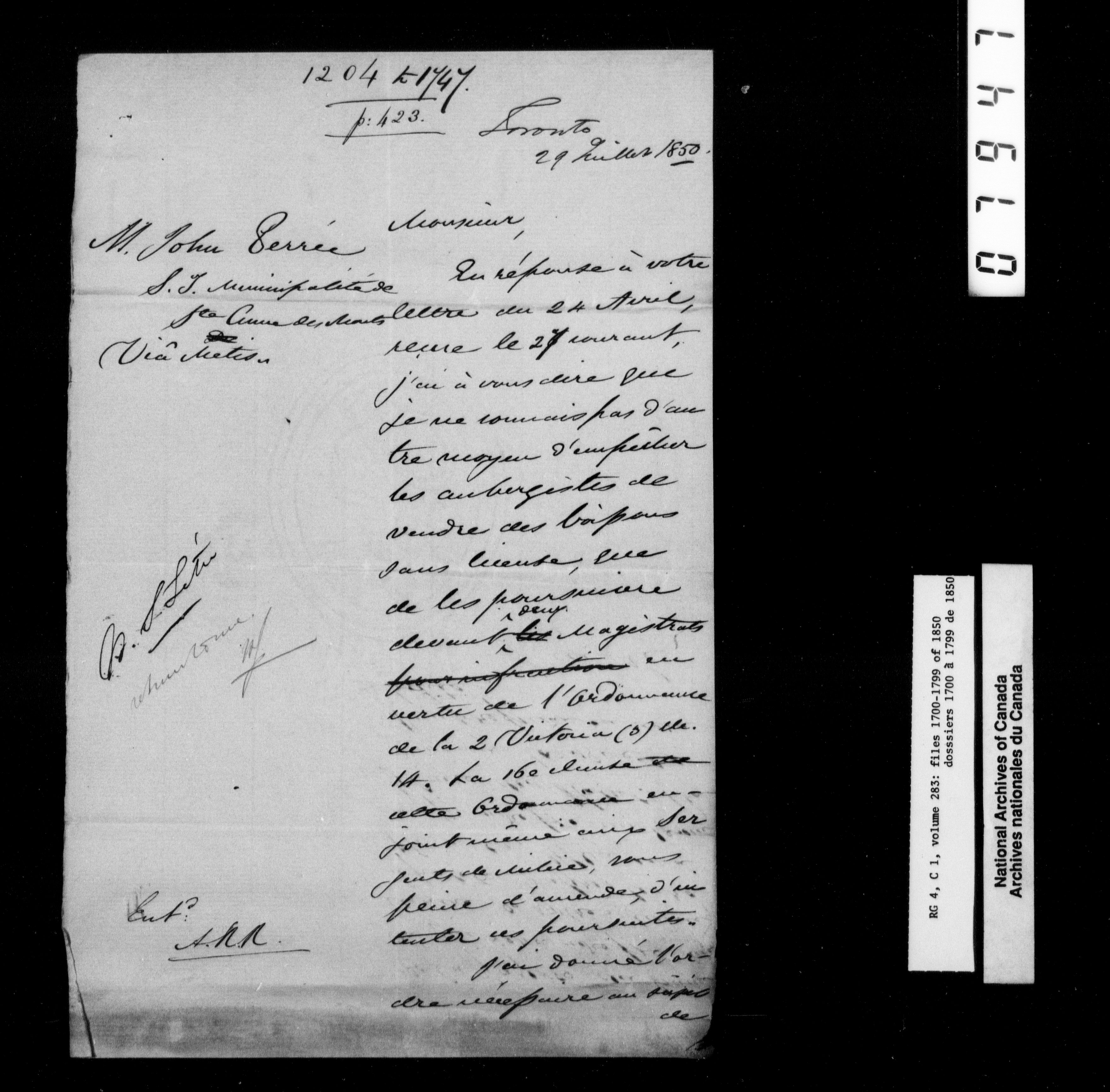 Canada East : Provincial Secretary numbered correspondence files, 1839-1867 : H-2628