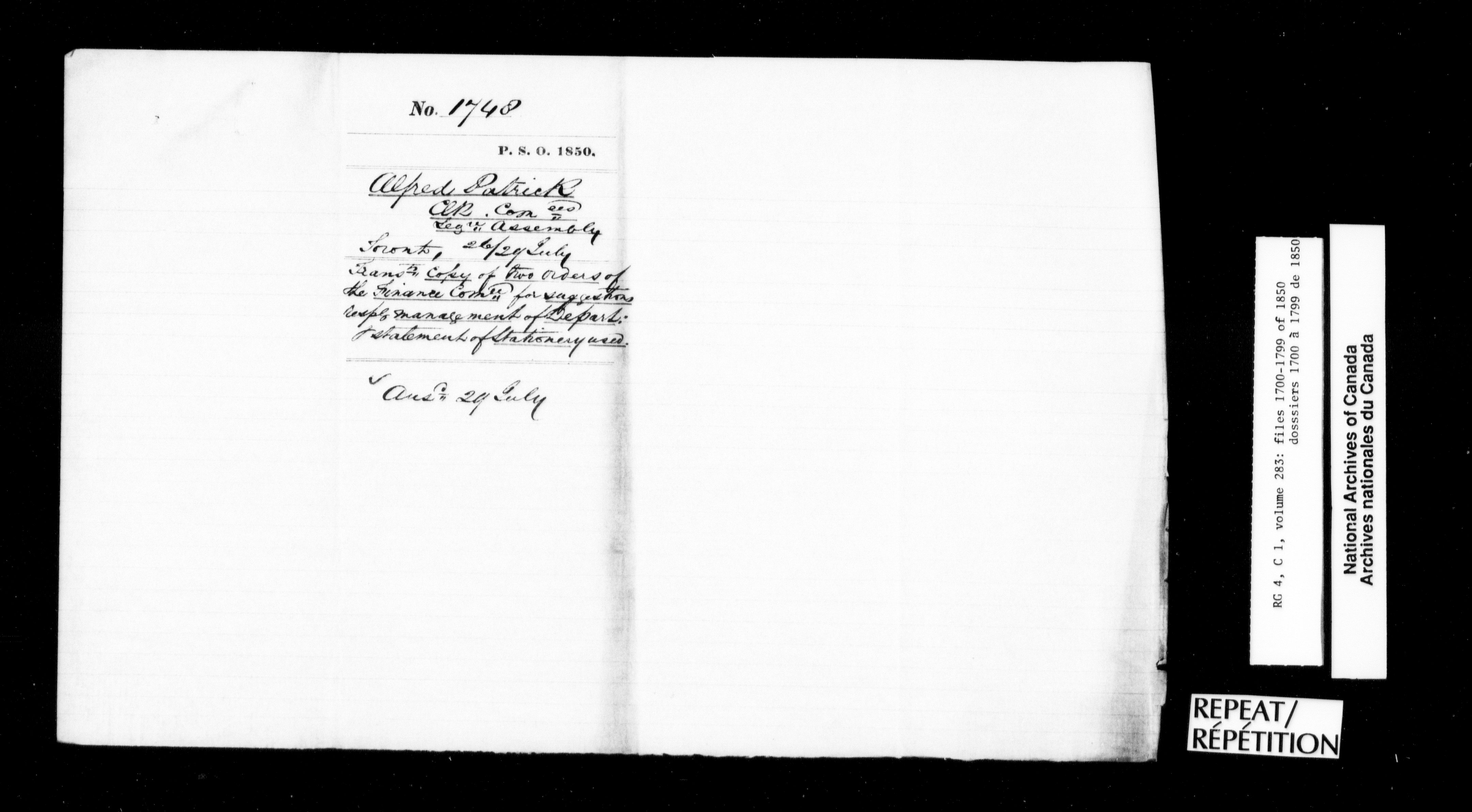 Canada East : Provincial Secretary numbered correspondence files, 1839-1867 - 2628