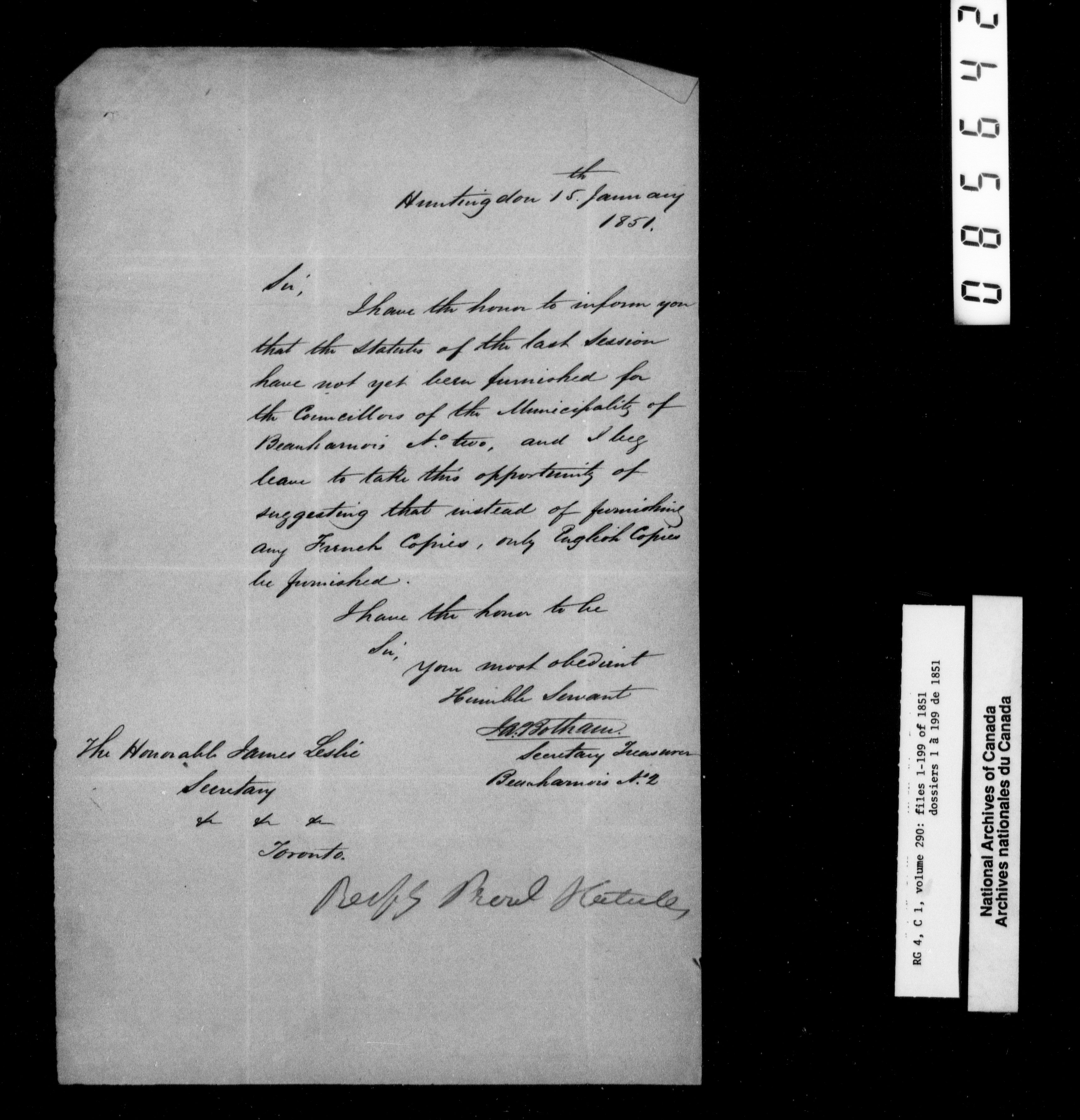 Canada East : Provincial Secretary numbered correspondence files, 1839-1867 - 2631