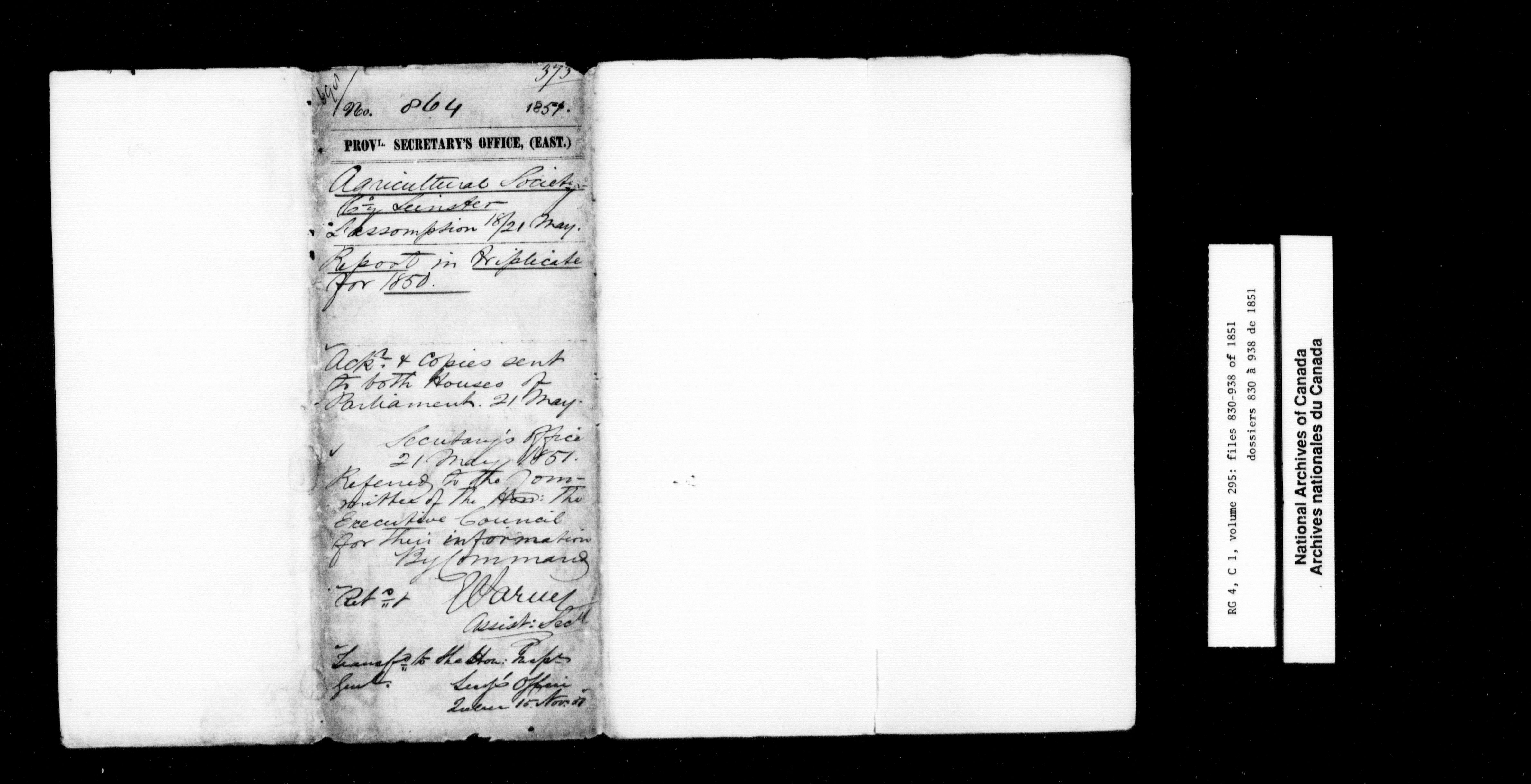 Canada East : Provincial Secretary numbered correspondence files, 1839-1867 - 2634
