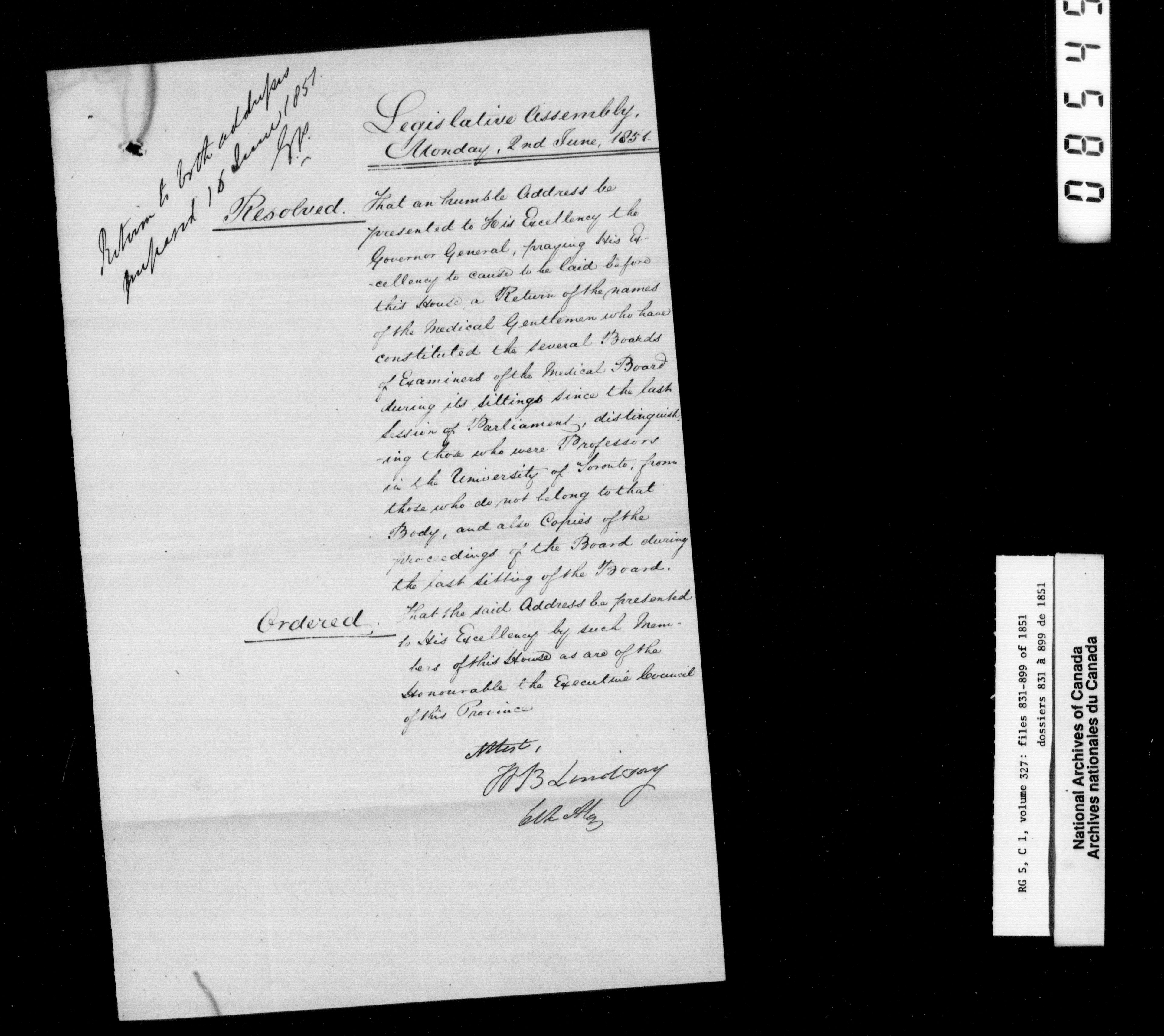 Canada East : Provincial Secretary numbered correspondence files, 1839-1867 - 2635