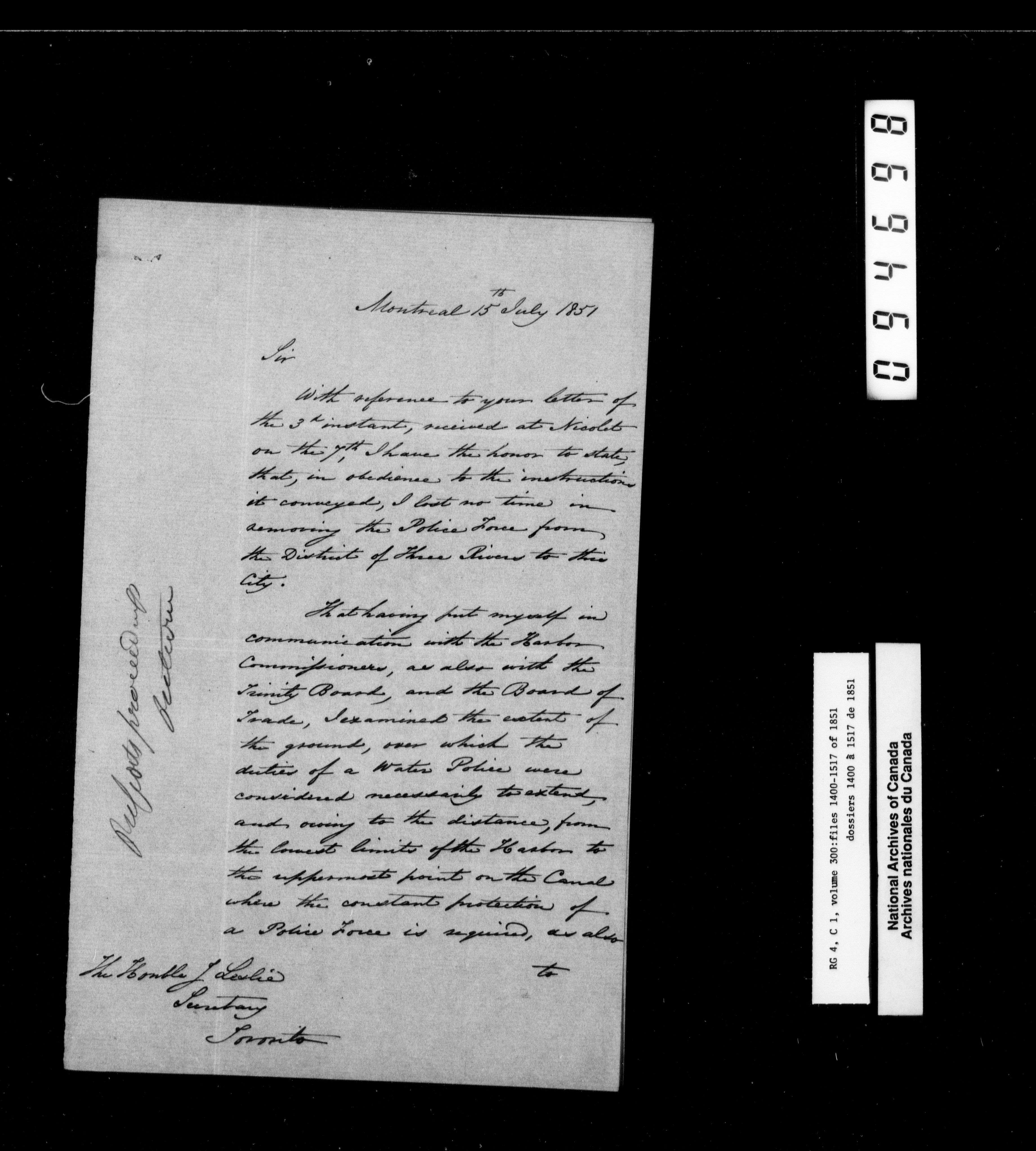 Canada East : Provincial Secretary numbered correspondence files, 1839-1867 - 2637