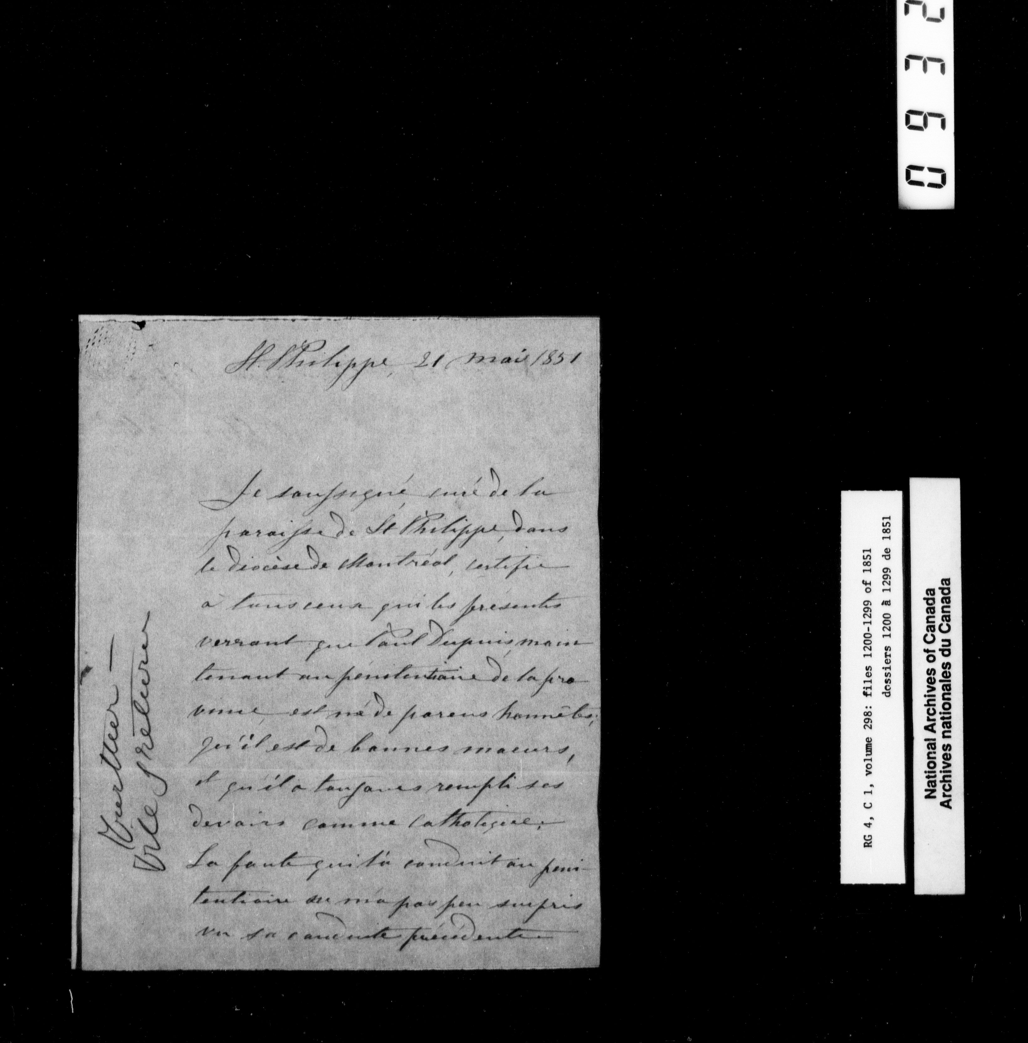 Canada East : Provincial Secretary numbered correspondence files, 1839-1867 - 2637