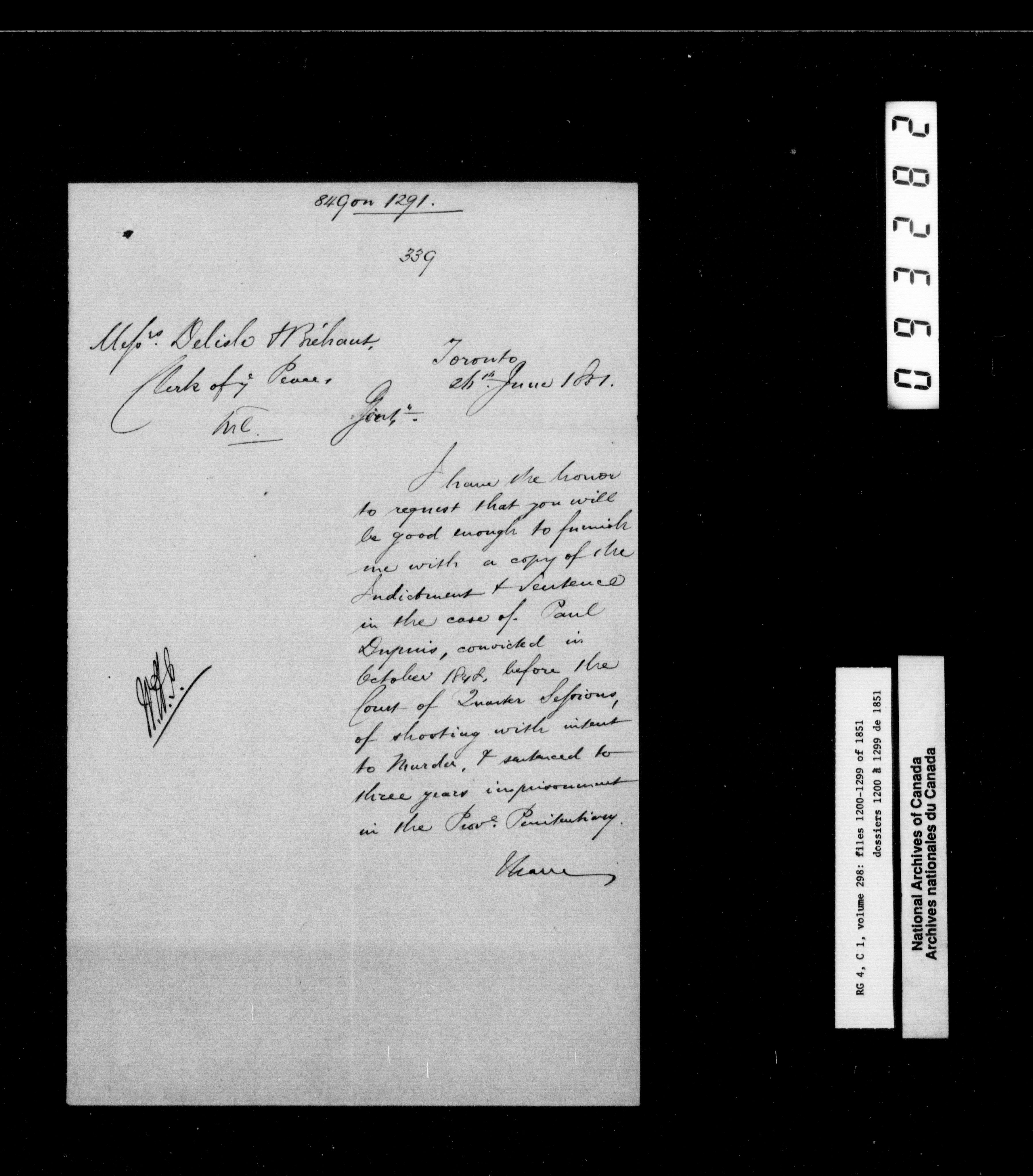 Canada East : Provincial Secretary numbered correspondence files, 1839-1867 - 2637