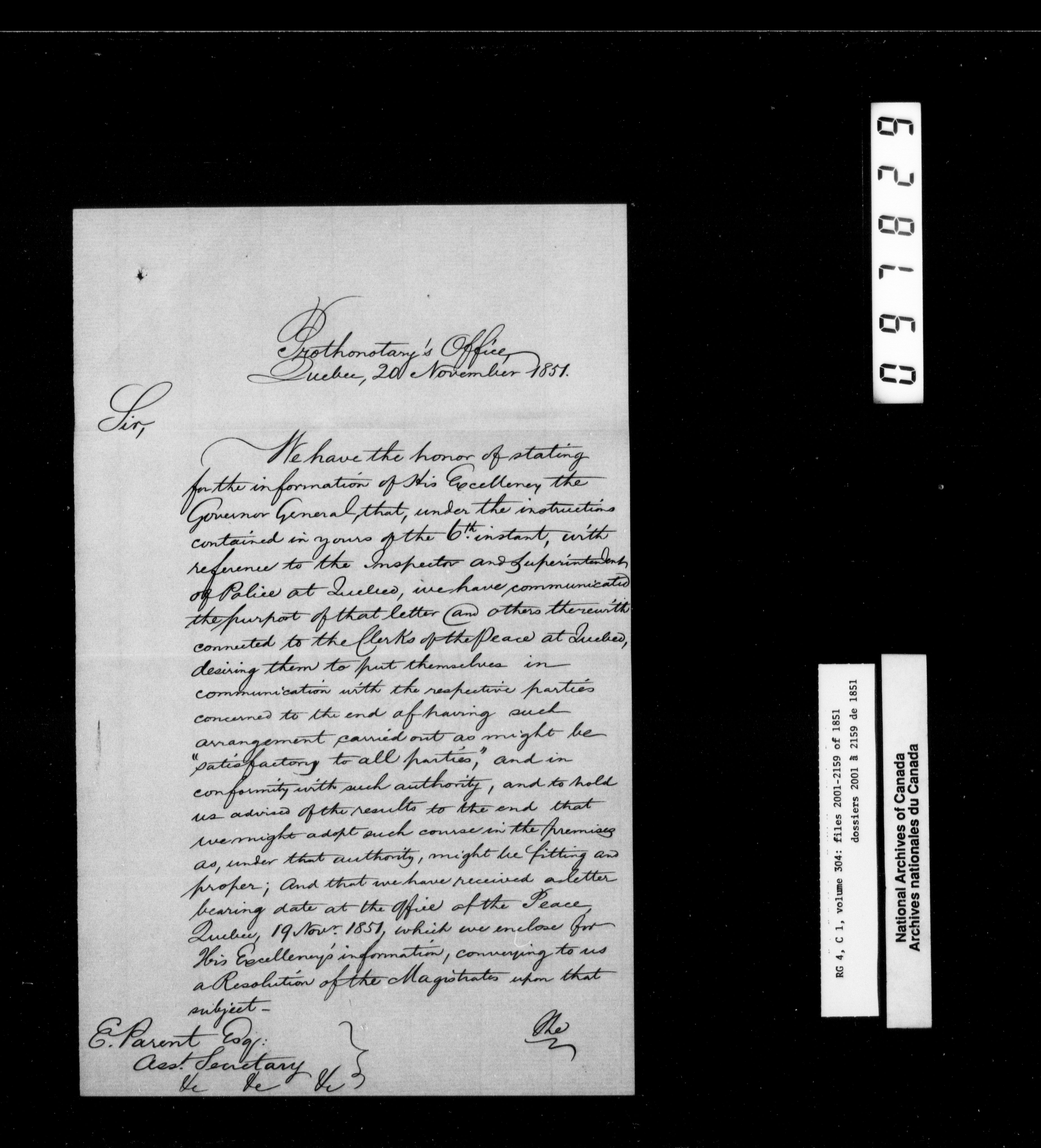 Canada East : Provincial Secretary numbered correspondence files, 1839-1867 - 2640
