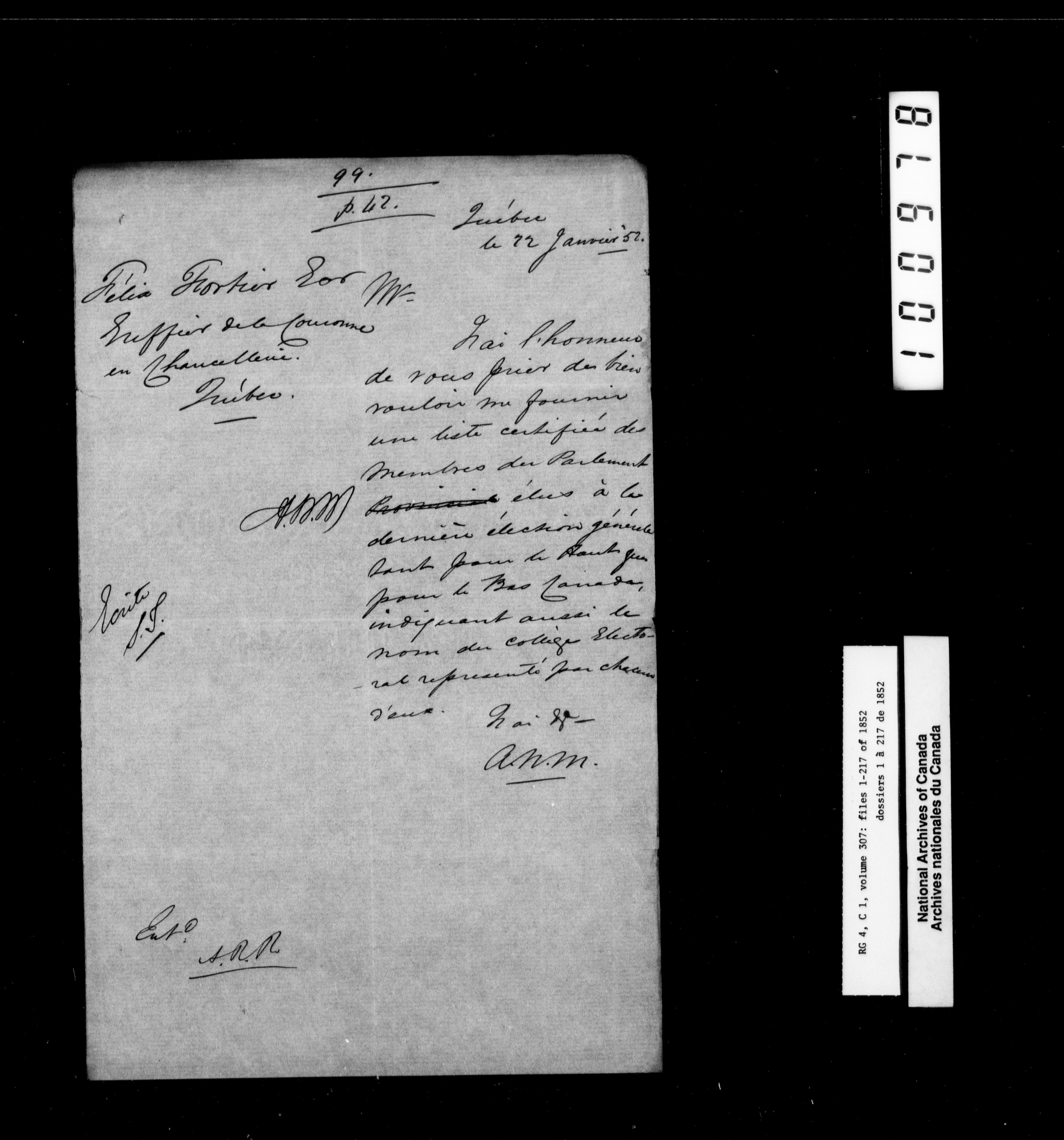 Canada East : Provincial Secretary numbered correspondence files, 1839-1867 - 2642