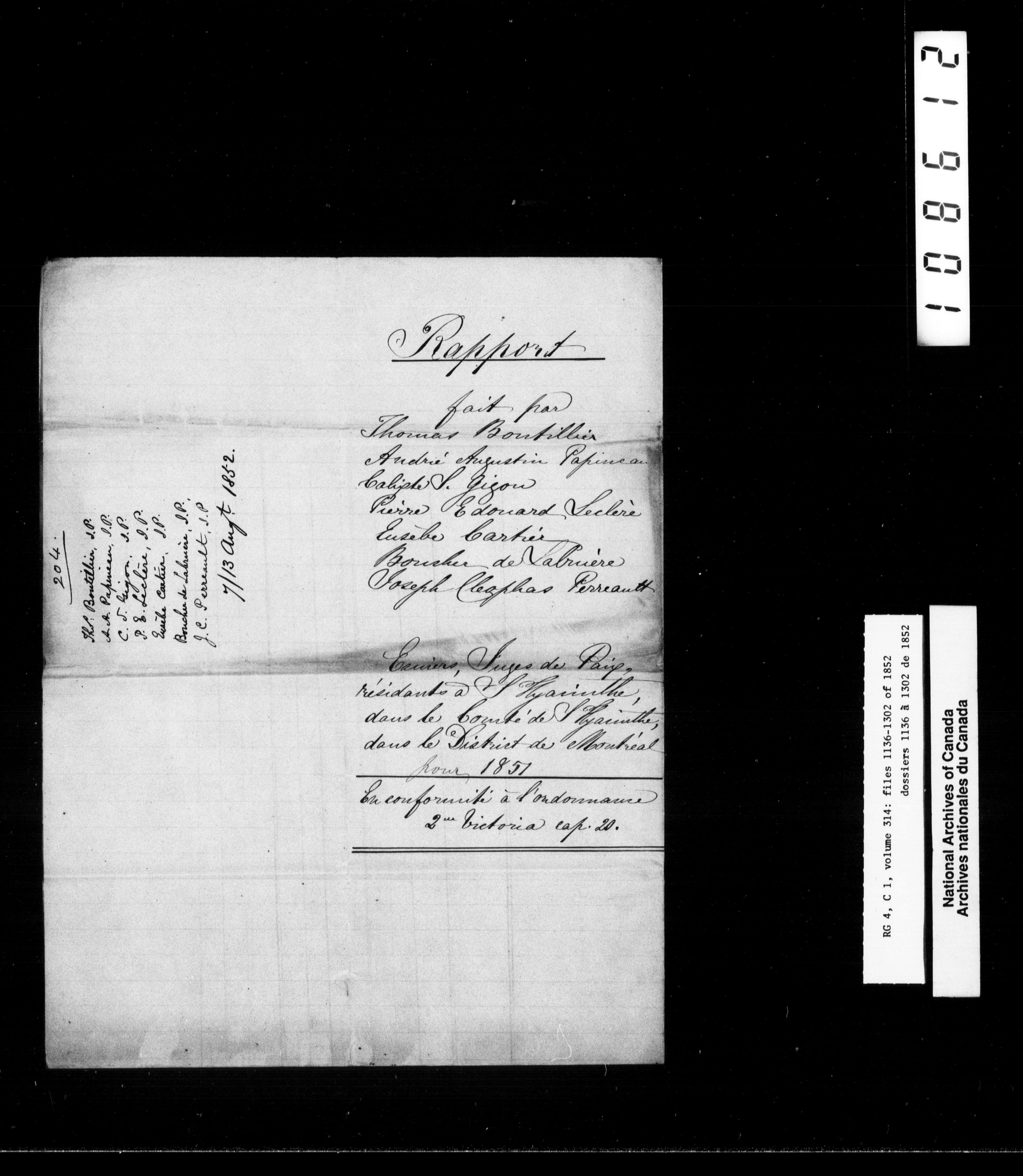 Canada East : Provincial Secretary numbered correspondence files, 1839-1867 - 2646