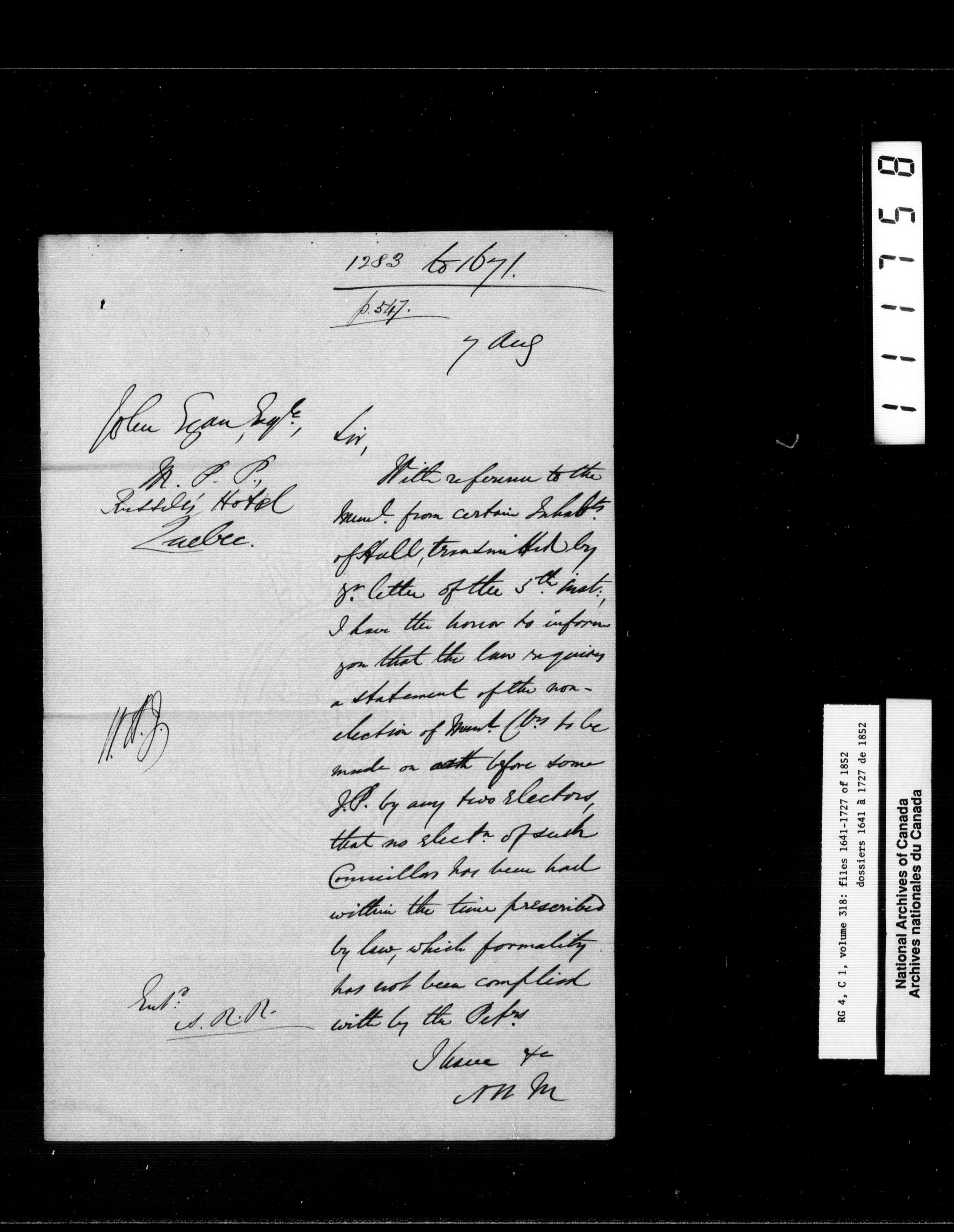 Canada East : Provincial Secretary numbered correspondence files, 1839-1867 - 2648