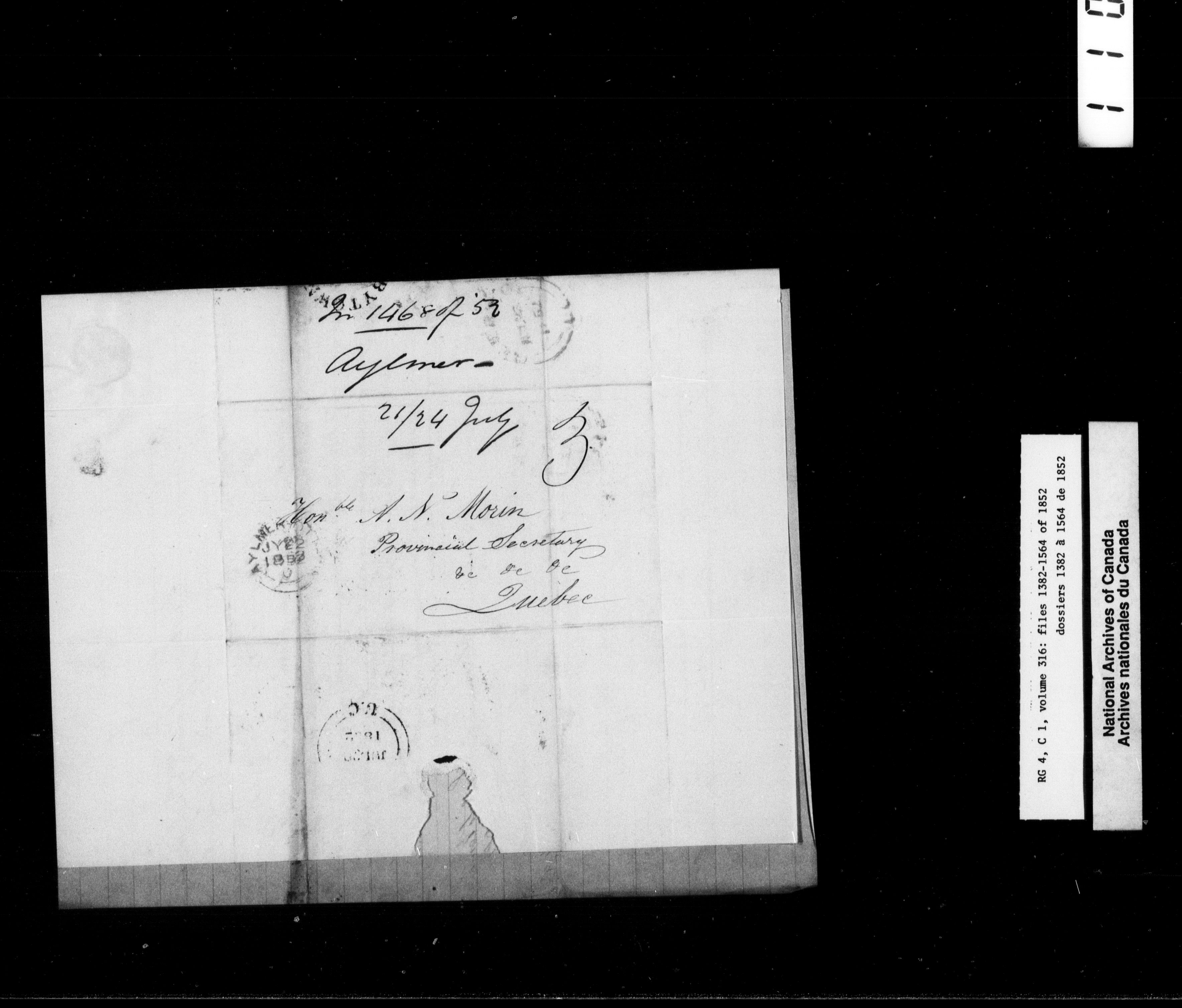 Canada East : Provincial Secretary numbered correspondence files, 1839-1867 - 2648