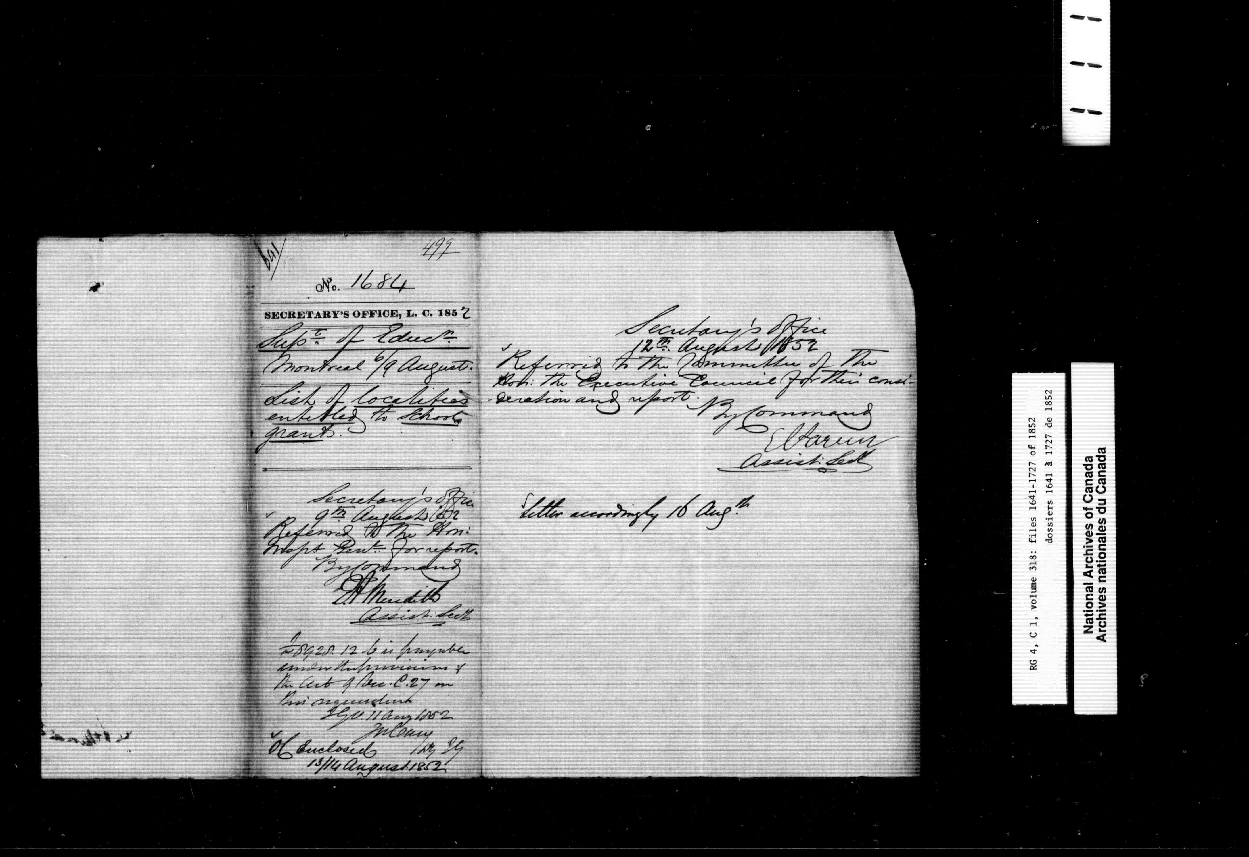 Canada East : Provincial Secretary numbered correspondence files, 1839-1867 - 2649
