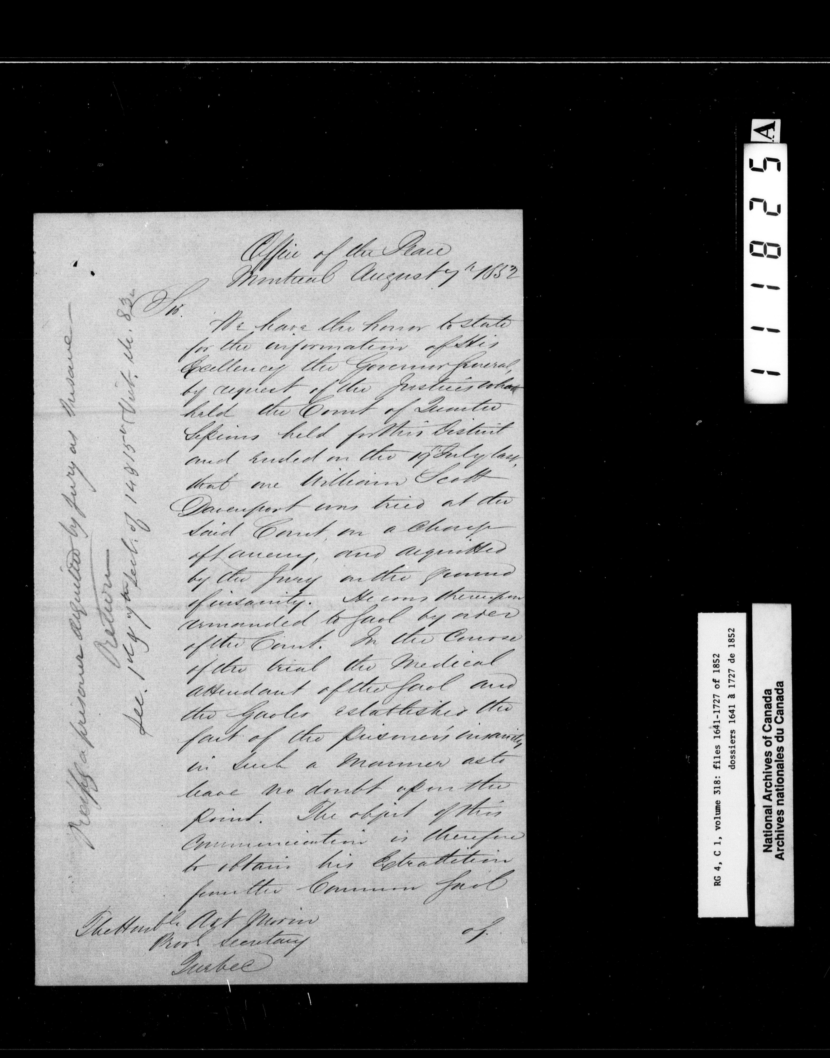 Canada East : Provincial Secretary numbered correspondence files, 1839-1867 - 2649