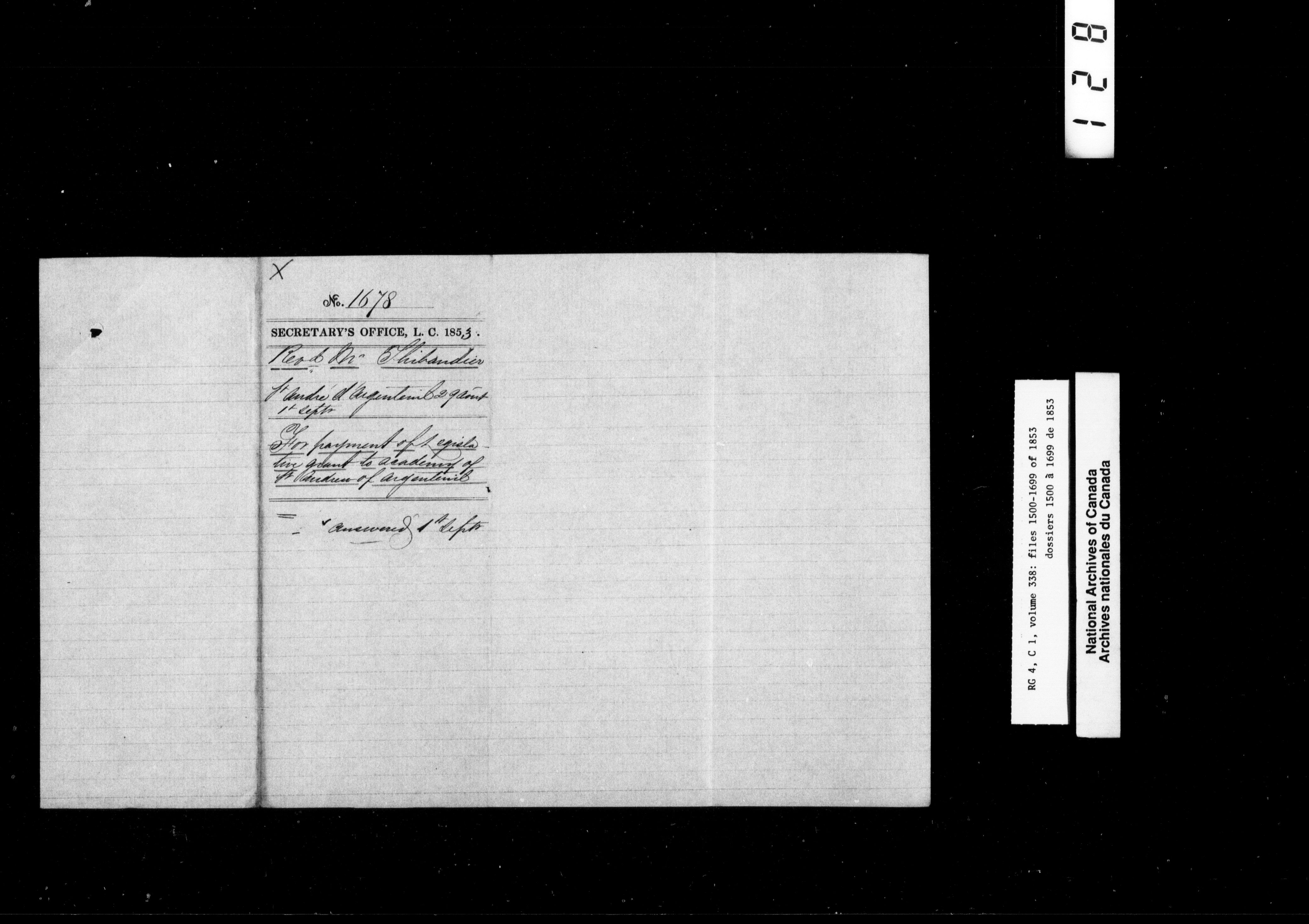 Canada East : Provincial Secretary numbered correspondence files, 1839-1867 - 2660