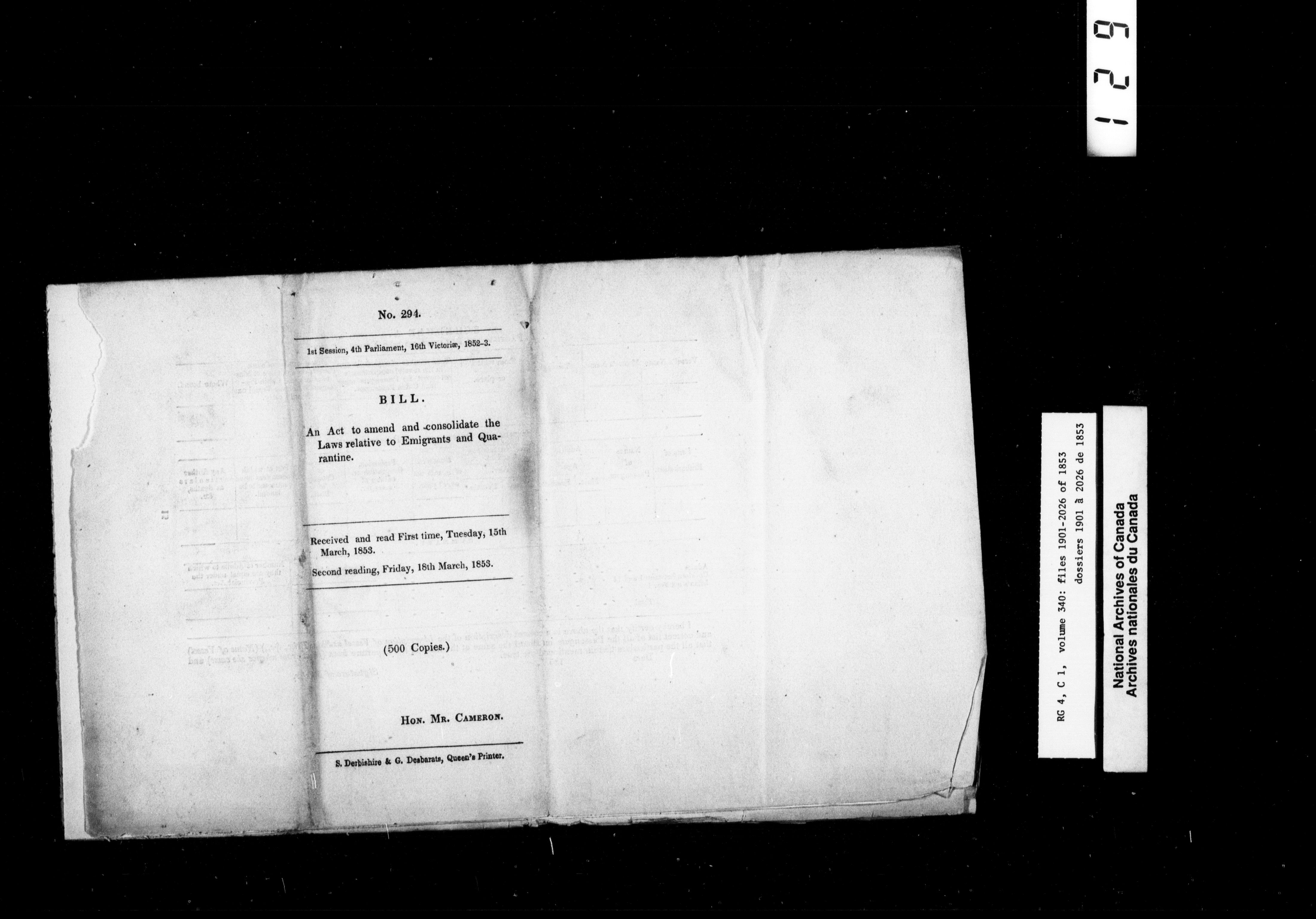 Canada East : Provincial Secretary numbered correspondence files, 1839-1867 - 2661