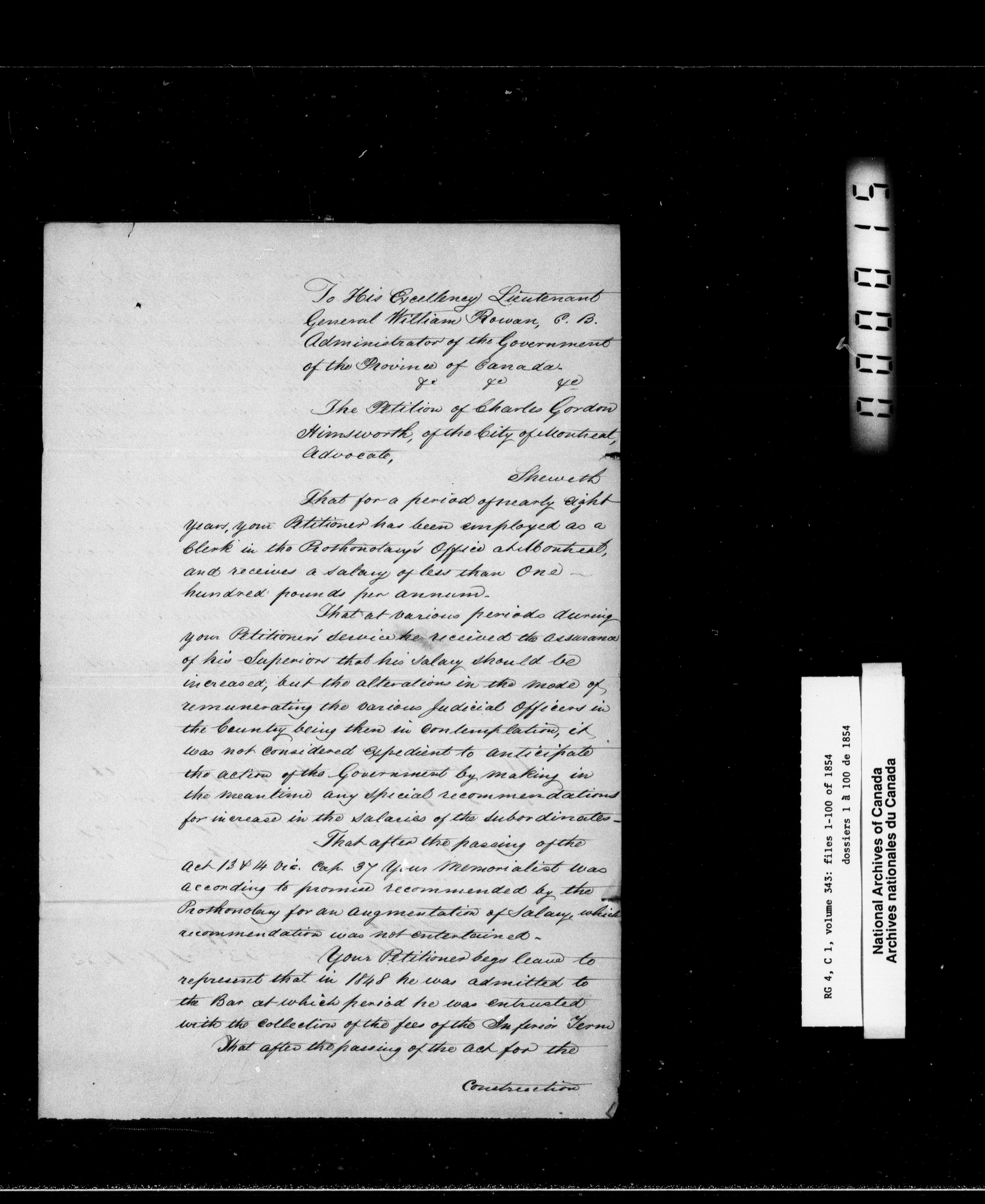Canada East : Provincial Secretary numbered correspondence files, 1839-1867 - 2663